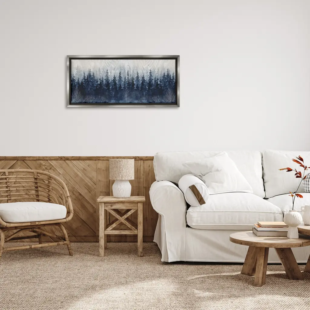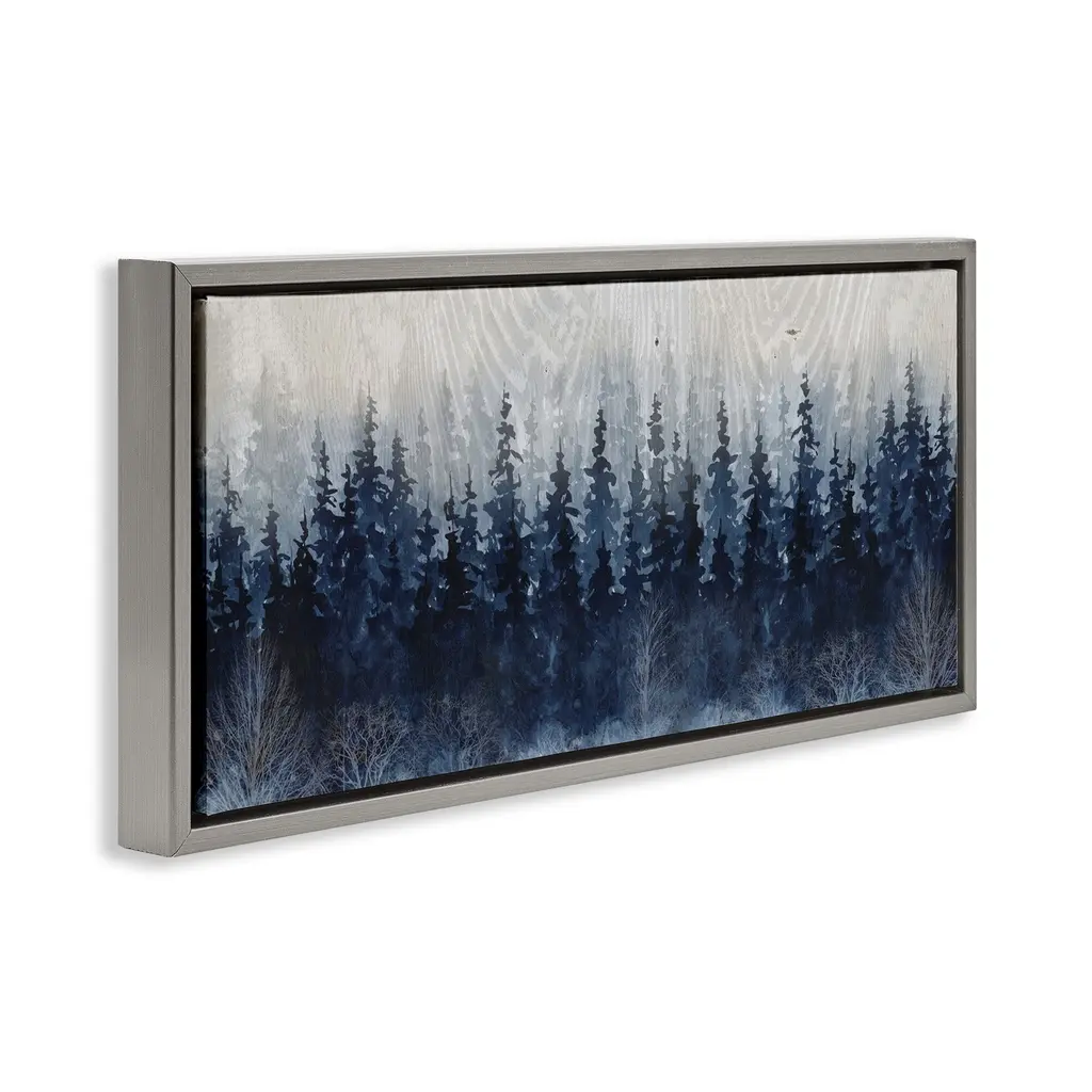 Stupell Rustic Blue Forest Tree Line Framed Floater Canvas Wall Art Design By Carol Robinson - 31 X 14 - Grey