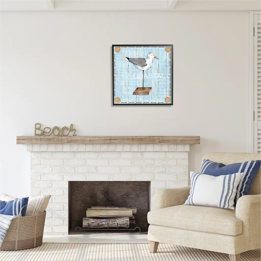 Add dimension to any room with our textured Framed Giclee Artwork. Our framed artwork is securely mounted into a 1.5-inch thick wood grain frame and ready to hang. Frames are available in three alluring styles: black, gray farmhouse and white. In addition, you should check out our oversized options if you want a statement piece. Stupell Wall Art is made in the USA.Features: Dimensions: 12 x 1.5 x 12 FramedFramed Giclee Sizes Include Standard: 12 x 1.5 x 12 Large: 17 x 1.5 x 17 Oversized: 24 x 1.5 x 24Wall Art is Ready to Hang with Hardware Free Hanging. No installation required. For Easy Set Up Lean or Layer Artwork on Shelf or Against Wall.Our giclée prints are carefully mounted on a durable MDF backing, and then perfectly finished in a 1.5 inch thick woodgrain frame. Mounted frame colors include black, gray farmhouse and white. Made In USA.Artwork Relates To: Animal, Bird, Seagull, Seashell, Nautical, MaritimeDesign by Emma Leach