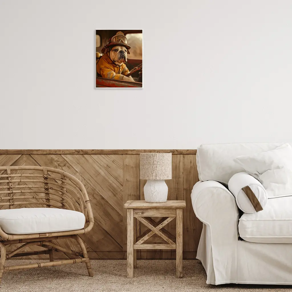 Our wall plaques start as high-quality lithograph prints mounted on durable 0.5-inch thick MDF wood. Each piece is hand finished and comes with a fresh layer of white foil on the sides to give it a crisp, clean look. Plaques arrive ready to hang without installation and come with removable plastic corners to keep them from damage in transit. Stupell Wall Art is made in the USA.Features: Dimensions: 11 x 0.5 x 14 InchesWall Art is Ready to Hang with Hardware Free Hanging. No installation required. For Easy Set Up Lean or Layer Artwork on Shelf or Against Wall.All of our wall plaques start off as high quality lithograph prints that are then mounted on durable 0.5 inch thick MDF wood. Each piece is hand finished and comes with a fresh layer of foil on the sides to give it a crisp clean look. Made In USA.Artwork Relates To: Animal, Pet, Dog, Bulldog, Canine, Fireman, OccupationDesign by Ray Heere