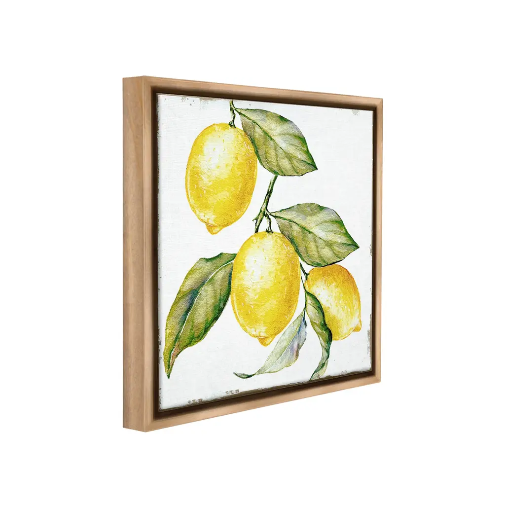 Elevate your home or office to the next level with Stupell Framed Floating Canvas Wall Art. Our premium hand-stretched canvas is mounted securely into a sturdy lightweight frame. The museum-style gap between the wrapped canvas and the box frame gives the illusion of floating artwork. Stupell Wall Art is made in the USA.Features: Dimensions: 18 x 1.7 x 18 Frame, 17 x 1.5 x 17 Canvas ArtFloating Frame Canvas Products are available in sizes 18"x18" and 25"x25". All Floating Frame Canvas Products have a 1.7" Depth.Wall Art is Ready to Hang with Hardware Free Hanging. No Installation required. For Easy Set Up Lean or Layer Artwork on Shelf or Against Wall. Artwork is Permently Fixed into the Frame.Our elevated 1.7" Thick Floating Frame is the perfect complement to our canvas style Wall Art. We use only the highest quality inks in house with industry leading printing solutions. Canvas is hand stretched over a durable wood foundation and then mounted securly into a Modern Box Frame. Made in the USA.Artwork Relates To: Citrus, Fruit, Lemon, Plant, Produce, Rustic, CountryDesign by GraffiTee Studios