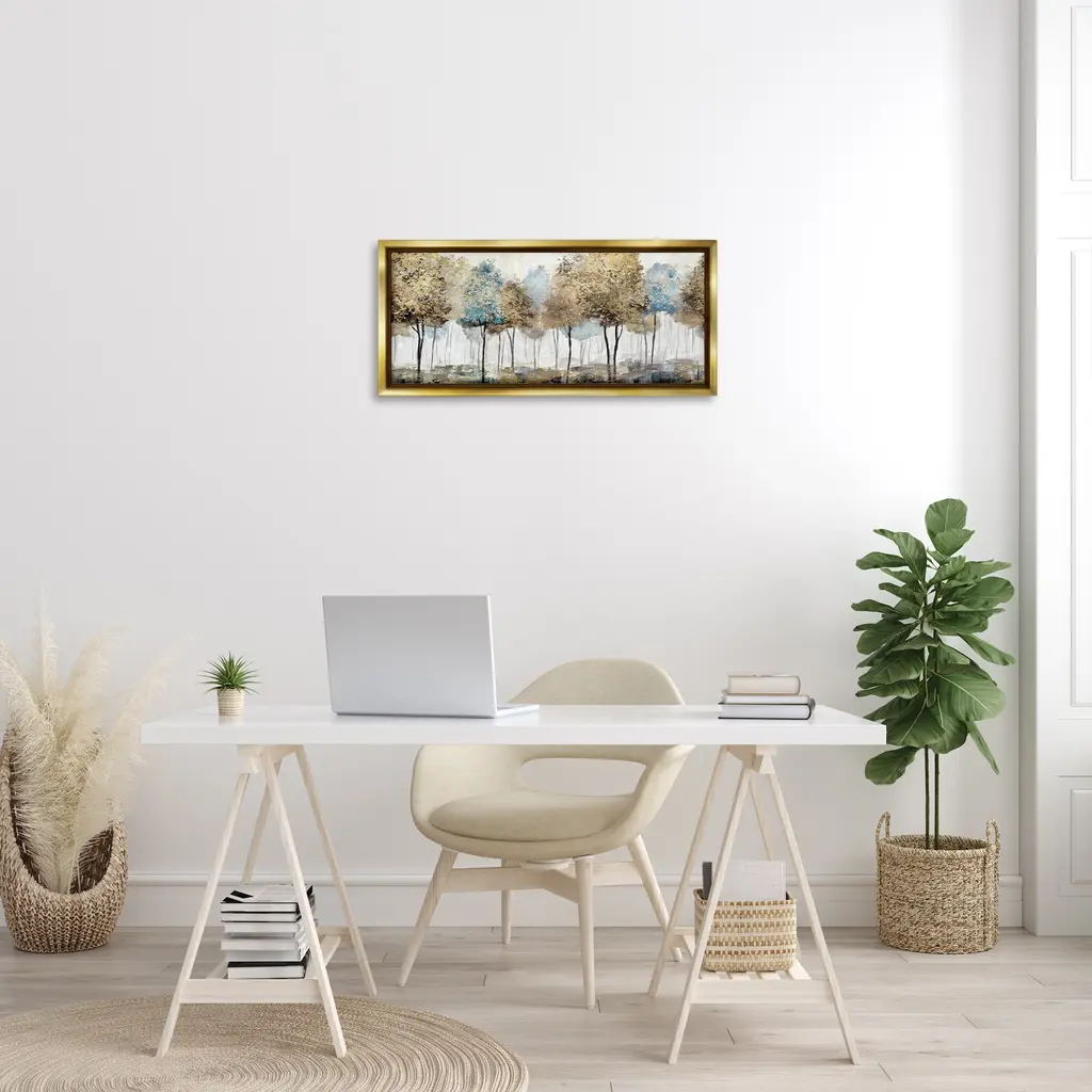Elevate your home or office to the next level with Stupell Framed Floating Canvas Wall Art. Our premium hand-stretched canvas is mounted securely into a sturdy lightweight frame. The museum-style gap between the wrapped canvas and the box frame gives the illusion of floating artwork. Stupell Wall Art is made in the USA.Features: Dimensions: 25 x 1.7 x 11 Frame, 24 x 1.5 x 10 Canvas ArtFloating Frame Canvas Products are available in sizes 25"x11" and 31"x14". All Floating Frame Canvas Products have a 1.7" Depth.Wall Art is Ready to Hang with Hardware Free Hanging. No Installation required. For Easy Set Up Lean or Layer Artwork on Shelf or Against Wall. Artwork is Permently Fixed into the Frame.Our elevated 1.7" Thick Floating Frame is the perfect complement to our canvas style Wall Art. We use only the highest quality inks in house with industry leading printing solutions. Canvas is hand stretched over a durable wood foundation and then mounted securly into a Modern Box Frame. Made in the USA.Artwork Relates To: Landscape, Forest, Trees, Woodland, AbstractDesign by Nan