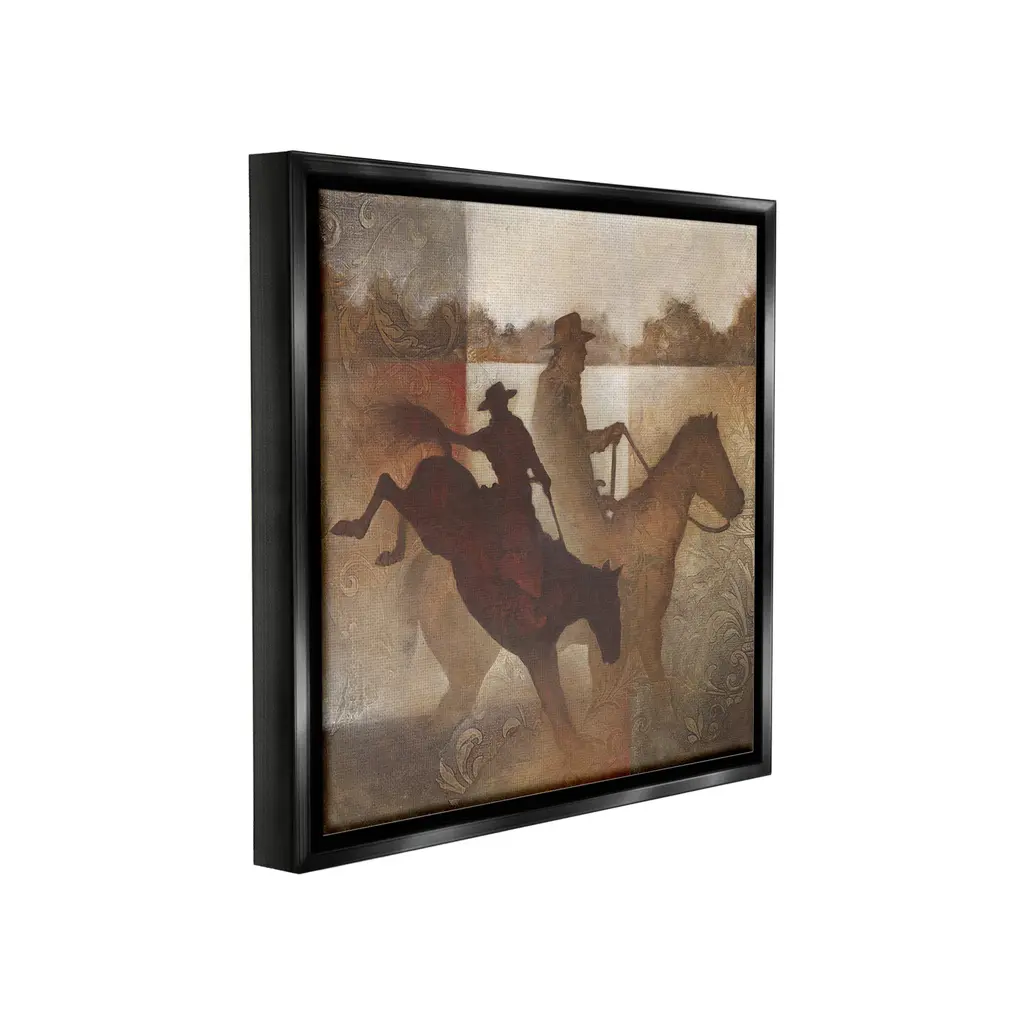 Stupell Rustic Cowboy Silhouettes Framed Floater Canvas Wall Art Design By White Ladder - 25 X 25 - Black