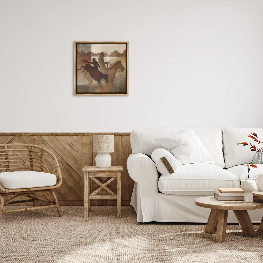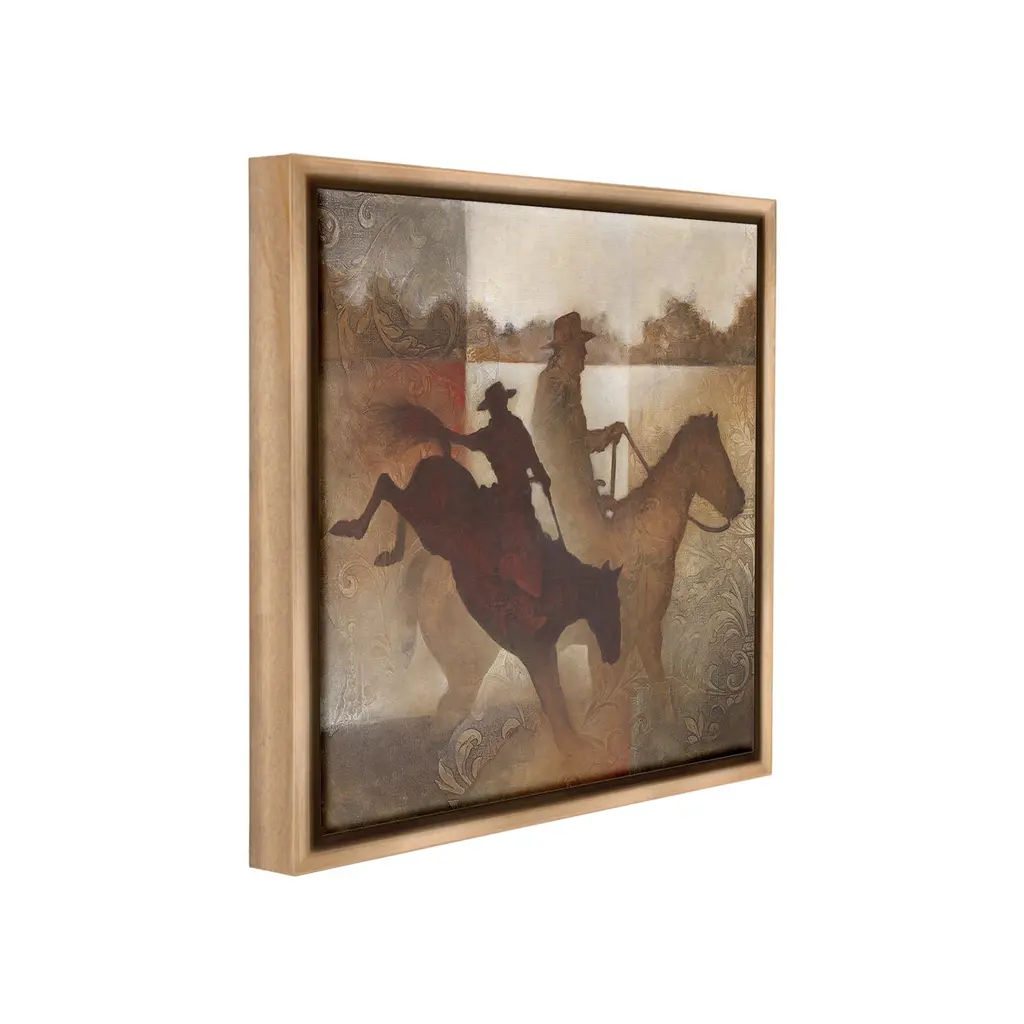 Elevate your home or office to the next level with Stupell Framed Floating Canvas Wall Art. Our premium hand-stretched canvas is mounted securely into a sturdy lightweight frame. The museum-style gap between the wrapped canvas and the box frame gives the illusion of floating artwork. Stupell Wall Art is made in the USA.Features: Dimensions: 18 x 1.7 x 18 Frame, 17 x 1.5 x 17 Canvas ArtFloating Frame Canvas Products are available in sizes 18"x18" and 25"x25". All Floating Frame Canvas Products have a 1.7" Depth.Wall Art is Ready to Hang with Hardware Free Hanging. No Installation required. For Easy Set Up Lean or Layer Artwork on Shelf or Against Wall. Artwork is Permently Fixed into the Frame.Our elevated 1.7" Thick Floating Frame is the perfect complement to our canvas style Wall Art. We use only the highest quality inks in house with industry leading printing solutions. Canvas is hand stretched over a durable wood foundation and then mounted securly into a Modern Box Frame. Made in the USA.Artwork Relates To: Equestrian, Rodeo, Country, Southwestern, Cowboy, Animal, Horse, Farm, Abstract, RusticDesign by White Ladder