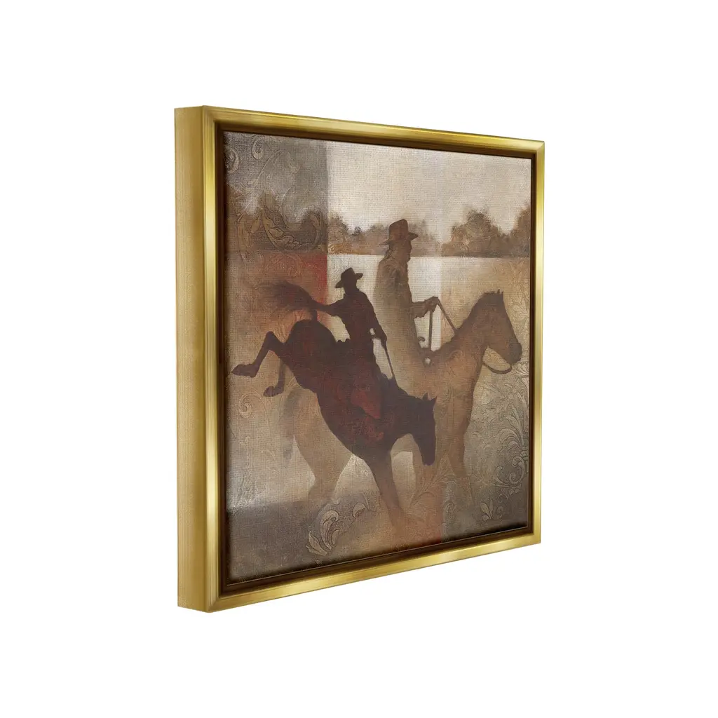 Stupell Rustic Cowboy Silhouettes Framed Floater Canvas Wall Art Design By White Ladder - 25 X 25 - Gold