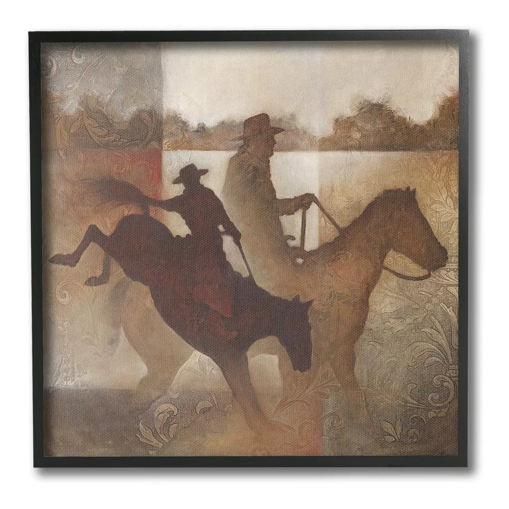 Stupell Rustic Cowboy Silhouettes Framed Giclee Art Design By White Ladder - 24 X 24 - Grey