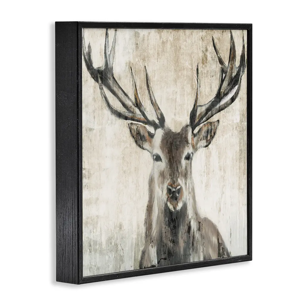 Add dimension to any room with our textured Framed Giclee Artwork. Our framed artwork is securely mounted into a 1.5-inch thick wood grain frame and ready to hang. Frames are available in three alluring styles: black, gray farmhouse and white. In addition, you should check out our oversized options if you want a statement piece. Stupell Wall Art is made in the USA.Features: Dimensions: 12 x 1.5 x 12 FramedFramed Giclee Sizes Include Standard: 12 x 1.5 x 12 Large: 17 x 1.5 x 17 Oversized: 24 x 1.5 x 24Wall Art is Ready to Hang - No Installation or Hardware Needed. For Easy Set Up Lean or Layer Artwork on Shelf or Against Wall.Our giclée prints are carefully mounted on a durable MDF backing, and then perfectly finished in a 1.5 inch thick woodgrain frame. Mounted frame colors include black, gray farmhouse and white. Made In USA.Artwork Relates To: Animal, Deer, Mammal, Wildlife, Elk, AntlerDesign by Liz Jardine