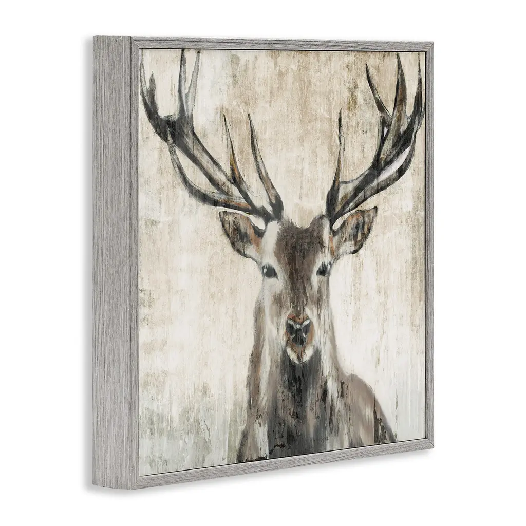 Add dimension to any room with our textured Framed Giclee Artwork. Our framed artwork is securely mounted into a 1.5-inch thick wood grain frame and ready to hang. Frames are available in three alluring styles: black, gray farmhouse and white. In addition, you should check out our oversized options if you want a statement piece. Stupell Wall Art is made in the USA.Features: Dimensions: 12 x 1.5 x 12 FramedFramed Giclee Sizes Include Standard: 12 x 1.5 x 12 Large: 17 x 1.5 x 17 Oversized: 24 x 1.5 x 24Wall Art is Ready to Hang - No Installation or Hardware Needed. For Easy Set Up Lean or Layer Artwork on Shelf or Against Wall.Our giclée prints are carefully mounted on a durable MDF backing, and then perfectly finished in a 1.5 inch thick woodgrain frame. Mounted frame colors include black, gray farmhouse and white. Made In USA.Artwork Relates To: Animal, Deer, Mammal, Wildlife, Elk, AntlerDesign by Liz Jardine