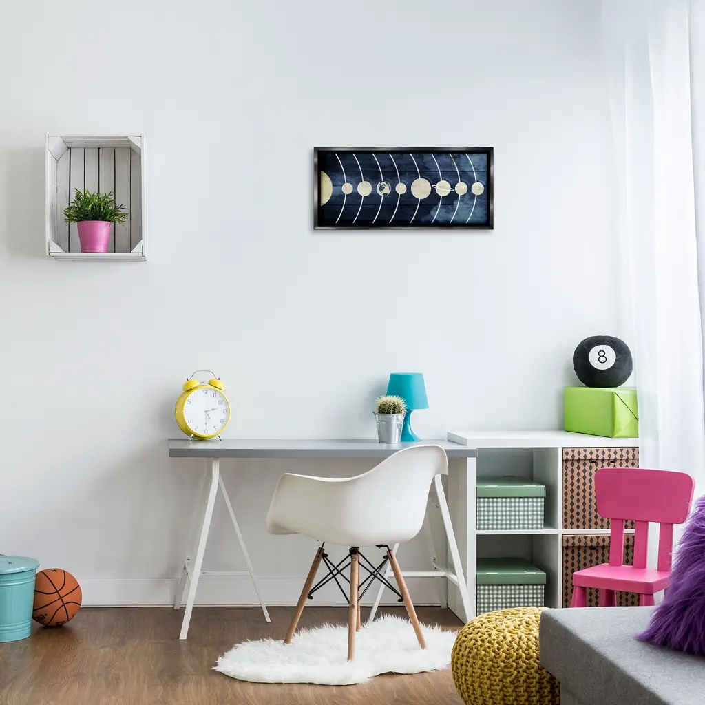 Elevate your home or office to the next level with Stupell Framed Floating Canvas Wall Art. Our premium hand-stretched canvas is mounted securely into a sturdy lightweight frame. The museum-style gap between the wrapped canvas and the box frame gives the illusion of floating artwork. Stupell Wall Art is made in the USA.Features: Dimensions: 25 x 1.7 x 11 Frame, 24 x 1.5 x 10 Canvas ArtFloating Frame Canvas Products are available in sizes 25"x11" and 31"x14". All Floating Frame Canvas Products have a 1.7" Depth.Wall Art is Ready to Hang with Hardware Free Hanging. No Installation required. For Easy Set Up Lean or Layer Artwork on Shelf or Against Wall. Artwork is Permently Fixed into the Frame.Our elevated 1.7" Thick Floating Frame is the perfect complement to our canvas style Wall Art. We use only the highest quality inks in house with industry leading printing solutions. Canvas is hand stretched over a durable wood foundation and then mounted securly into a Modern Box Frame. Made in the USA.Artwork Relates To: Outer Space, Planets, Solar System, Educational, KidsDesign by Daphne Polselli