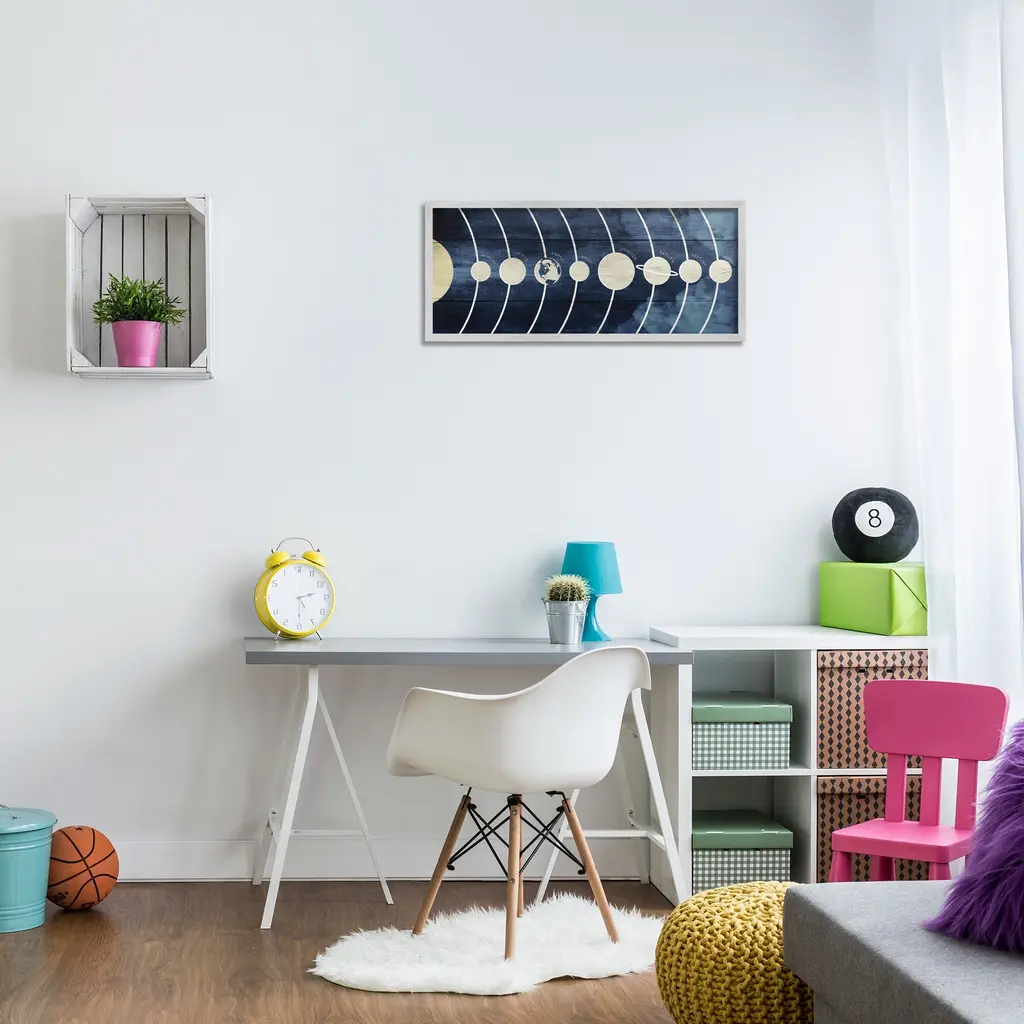 Add dimension to any room with our textured Framed Giclee Artwork. Our framed artwork is securely mounted into a 1.5-inch thick wood grain frame and ready to hang. Frames are available in three alluring styles: black, gray farmhouse and white. In addition, you should check out our oversized options if you want a statement piece. Stupell Wall Art is made in the USA.Features: Dimensions: 24 x 1.5 x 10 FramedFramed Giclee Product Sizes include 24"x10" and 30"x13". All Framed Giclee products have a 1.5" Depth.Wall Art is Ready to Hang with Hardware Free Hanging. No installation required. For Easy Set Up Lean or Layer Artwork on Shelf or Against Wall.Our giclée prints are carefully mounted on a durable MDF backing, and then perfectly finished in a 1.5 inch thick woodgrain frame. Mounted frame colors include black, gray farmhouse and white. Made In USA.Artwork Relates To: Outer Space, Planets, Solar System, Educational, KidsDesign by Daphne Polselli
