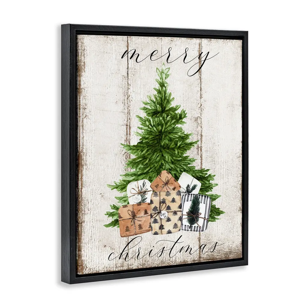 Elevate your home or office to the next level with Stupell Framed Floating Canvas Wall Art. Our premium hand-stretched canvas is mounted securely into a sturdy lightweight frame. The museum-style gap between the wrapped canvas and the box frame gives the illusion of floating artwork. Stupell Wall Art is made in the USA.Features: Dimensions: 17 x 1.7 x 21 Frame, 16 x 1.5 x 20 Canvas ArtFloating Frame Canvas Products are available in sizes 17"x21" and 25"x31". All Floating Frame Canvas Products have a 1.7" Depth.Wall Art is Ready to Hang with Hardware Free Hanging. No Installation required. For Easy Set Up Lean or Layer Artwork on Shelf or Against Wall. Artwork is Permently Fixed into the Frame.Our elevated 1.7" Thick Floating Frame is the perfect complement to our canvas style Wall Art. We use only the highest quality inks in house with industry leading printing solutions. Canvas is hand stretched over a durable wood foundation and then mounted securly into a Modern Box Frame. Made in the USA.Artwork Relates To: Holiday, Christmas, Tree, Rustic, Phrase, Gift, PresentDesign by Deborah Brown