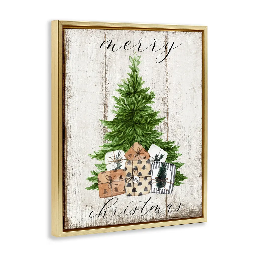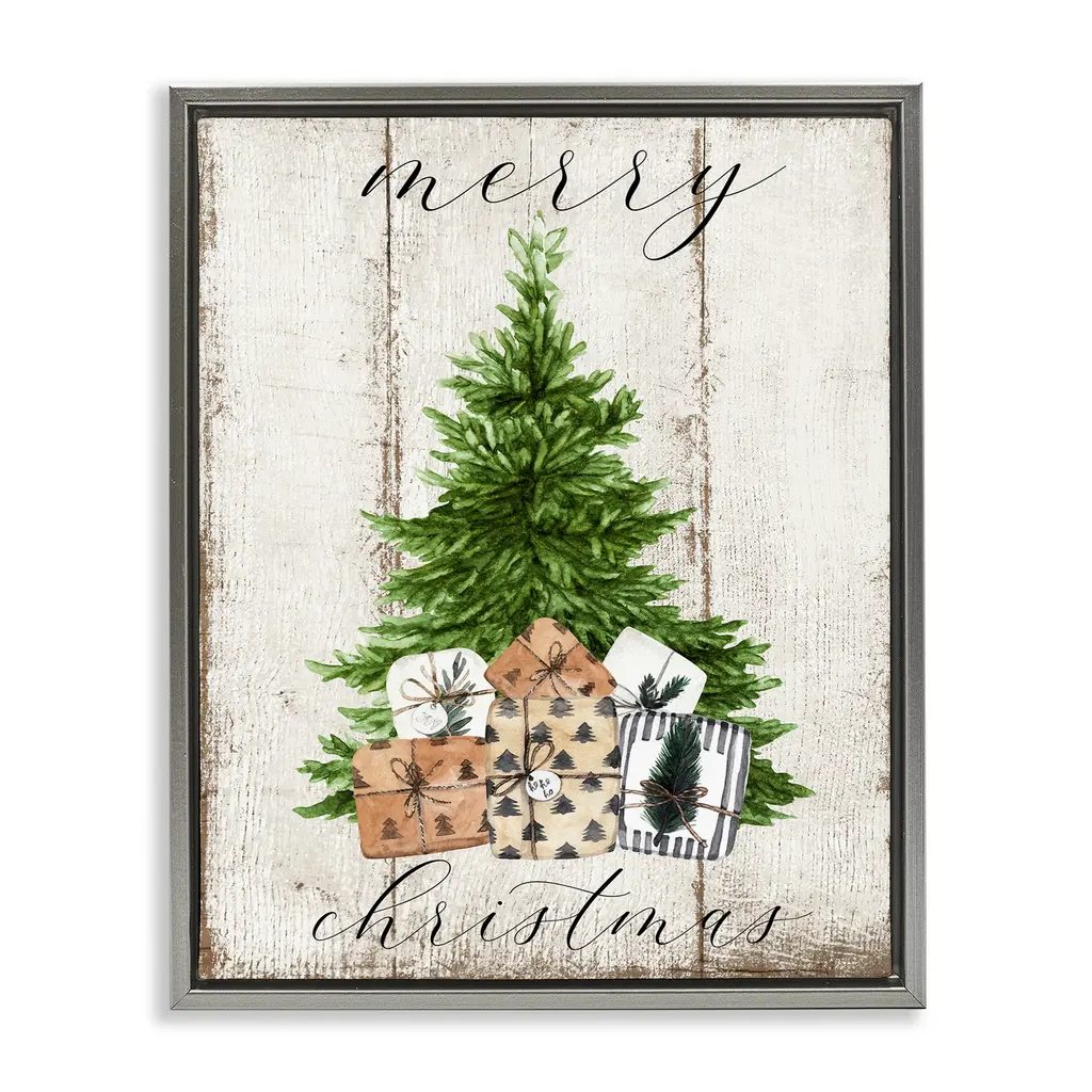 Elevate your home or office to the next level with Stupell Framed Floating Canvas Wall Art. Our premium hand-stretched canvas is mounted securely into a sturdy lightweight frame. The museum-style gap between the wrapped canvas and the box frame gives the illusion of floating artwork. Stupell Wall Art is made in the USA.Features: Dimensions: 17 x 1.7 x 21 Frame, 16 x 1.5 x 20 Canvas ArtFloating Frame Canvas Products are available in sizes 17"x21" and 25"x31". All Floating Frame Canvas Products have a 1.7" Depth.Wall Art is Ready to Hang with Hardware Free Hanging. No Installation required. For Easy Set Up Lean or Layer Artwork on Shelf or Against Wall. Artwork is Permently Fixed into the Frame.Our elevated 1.7" Thick Floating Frame is the perfect complement to our canvas style Wall Art. We use only the highest quality inks in house with industry leading printing solutions. Canvas is hand stretched over a durable wood foundation and then mounted securly into a Modern Box Frame. Made in the USA.Artwork Relates To: Holiday, Christmas, Tree, Rustic, Phrase, Gift, PresentDesign by Deborah Brown