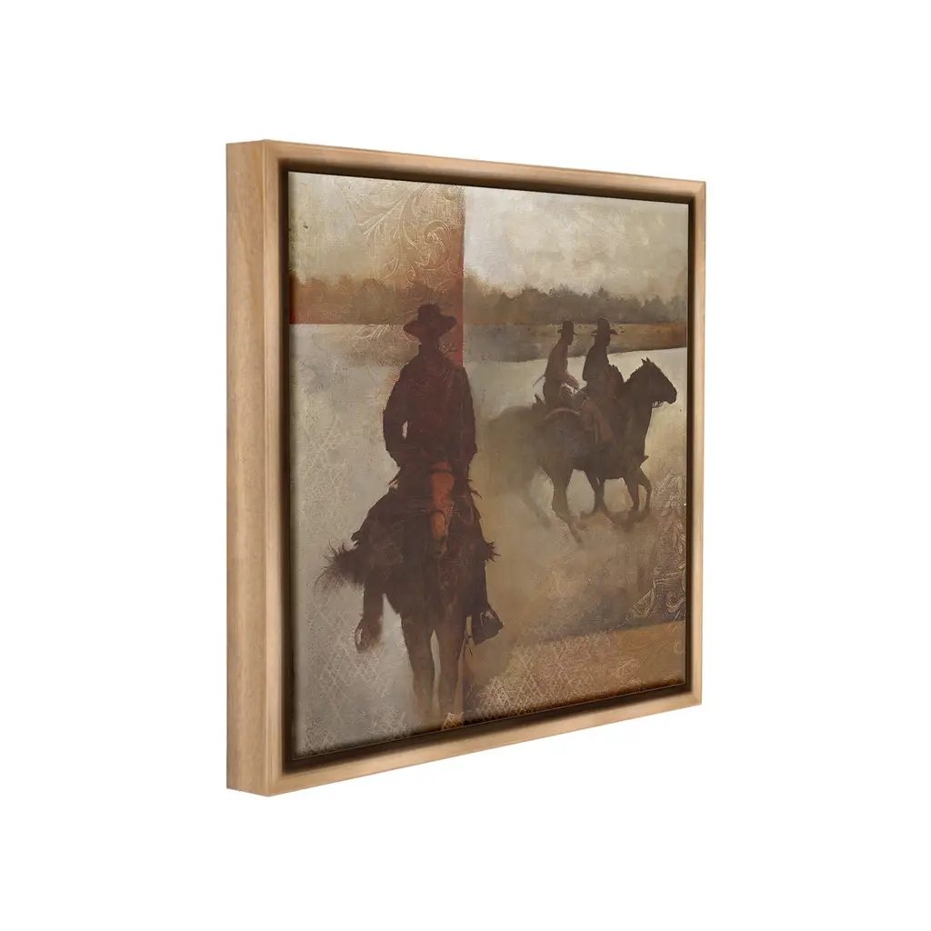 Elevate your home or office to the next level with Stupell Framed Floating Canvas Wall Art. Our premium hand-stretched canvas is mounted securely into a sturdy lightweight frame. The museum-style gap between the wrapped canvas and the box frame gives the illusion of floating artwork. Stupell Wall Art is made in the USA.Features: Dimensions: 18 x 1.7 x 18 Frame, 17 x 1.5 x 17 Canvas ArtFloating Frame Canvas Products are available in sizes 18"x18" and 25"x25". All Floating Frame Canvas Products have a 1.7" Depth.Wall Art is Ready to Hang with Hardware Free Hanging. No Installation required. For Easy Set Up Lean or Layer Artwork on Shelf or Against Wall. Artwork is Permently Fixed into the Frame.Our elevated 1.7" Thick Floating Frame is the perfect complement to our canvas style Wall Art. We use only the highest quality inks in house with industry leading printing solutions. Canvas is hand stretched over a durable wood foundation and then mounted securly into a Modern Box Frame. Made in the USA.Artwork Relates To: Equestrian, Rodeo, Country, Southwestern, Cowboy, Animal, Horse, Farm, Abstract, RusticDesign by White Ladder