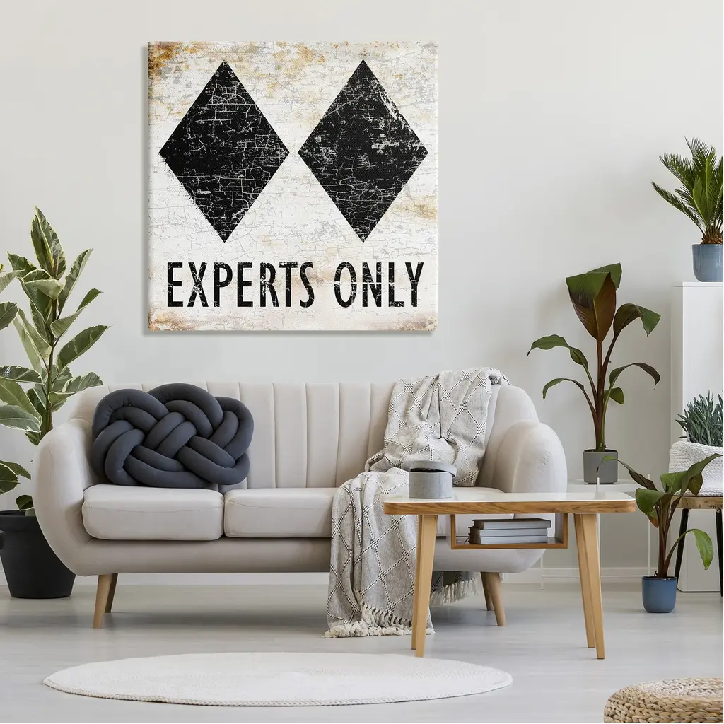 We create our stretched canvas to the highest standards. Using only the highest quality inks and canvas on Mimaki printers, we hand-cut and stretch each piece over a 1.5-inch thick wooden frame for hanging. As a result, the art comes ready to hang on the sturdy ledge with no installation required. Stupell Wall Art is made in the USA.Features: Dimensions: 17 x 1.5 x 17 InchesStretched Canvas Sizes Include Standard: 17 x 1.5 x 17 Large: 24 x 1.5 x 24 X-Large: 30 x 1.5 x 30 Oversized: 36 x 1.5 x 36Wall Art is Ready to Hang with Hardware Free Hanging. No installation required. For Easy Set Up Lean or Layer Artwork on Shelf or Against Wall.Our stretched canvas is created with the highest standards. We use only the highest quality inks and canvas on our in house Mimaki printers, and then hand cut and stretch each piece over a 1.5 inch thick wooden frame for hanging. Made In USA.Artwork Relates To: Skiing, Winter Sports, Rustic, Experts OnlyDesign by Peter Horjus