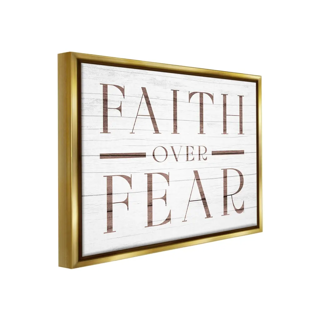 Elevate your home or office to the next level with Stupell Framed Floating Canvas Wall Art. Our premium hand-stretched canvas is mounted securely into a sturdy lightweight frame. The museum-style gap between the wrapped canvas and the box frame gives the illusion of floating artwork. Stupell Wall Art is made in the USA.Features: Dimensions: 21 x 1.7 x 17 Frame, 20 x 1.5 x 16 Canvas ArtFloating Frame Canvas Products are available in sizes 21"x17" and 31"x25". All Floating Frame Canvas Products have a 1.7" Depth.Wall Art is Ready to Hang with Hardware Free Hanging. No Installation required. For Easy Set Up Lean or Layer Artwork on Shelf or Against Wall. Artwork is Permently Fixed into the Frame.Our elevated 1.7" Thick Floating Frame is the perfect complement to our canvas style Wall Art. We use only the highest quality inks in house with industry leading printing solutions. Canvas is hand stretched over a durable wood foundation and then mounted securly into a Modern Box Frame. Made in the USA.Artwork Relates To: Rustic, Religious, Spiritual, Faith, Proverb, Faith Over FearDesign by Lil' Rue