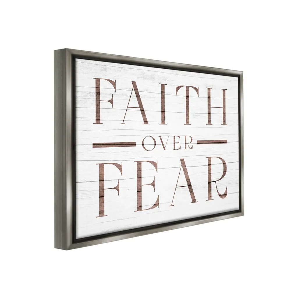 Stupell Rustic Faith Over Fear Framed Floater Canvas Wall Art Design By Lil' Rue - 31 X 25 - Grey