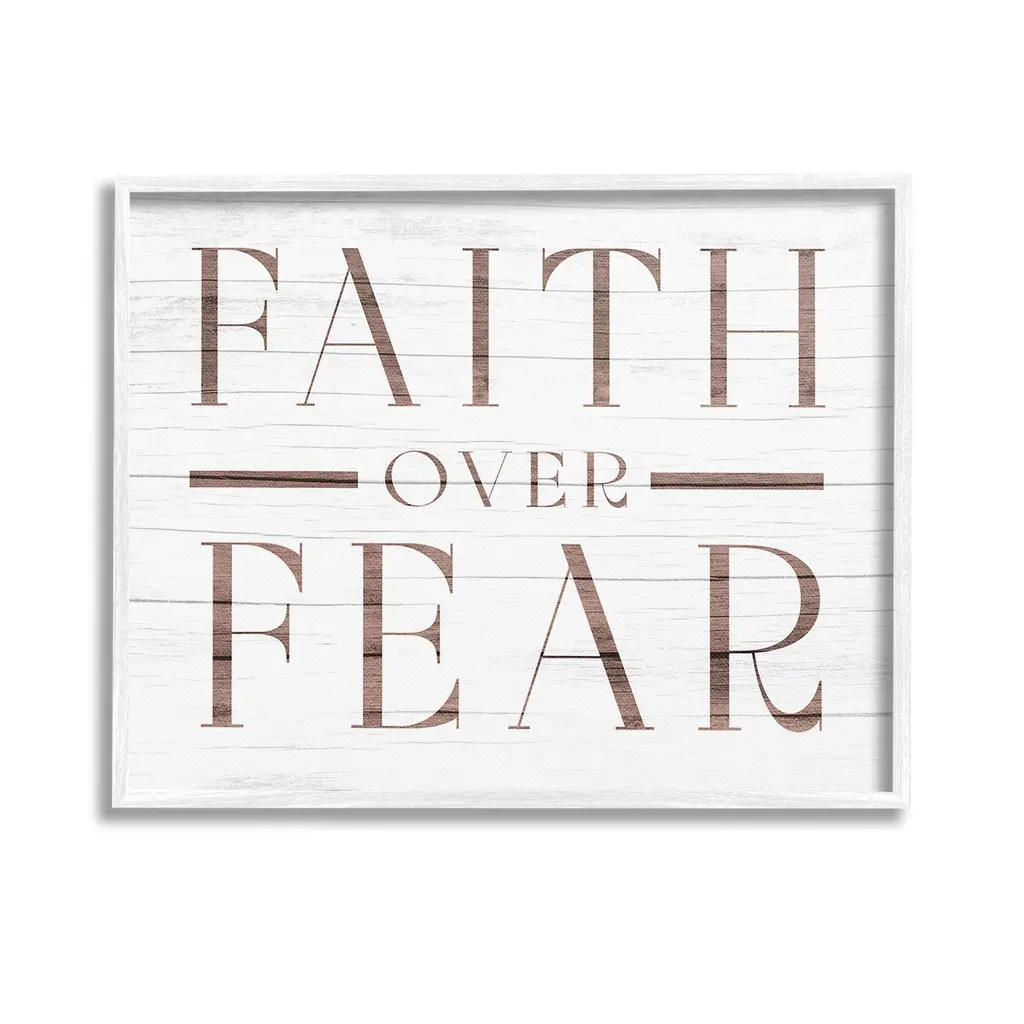 Add dimension to any room with our textured Framed Giclee Artwork. Our framed artwork is securely mounted into a 1.5-inch thick wood grain frame and ready to hang. Frames are available in three alluring styles: black, gray farmhouse and white. In addition, you should check out our oversized options if you want a statement piece. Stupell Wall Art is made in the USA.Features: Dimensions: 14 x 1.5 x 11 FramedFramed Giclee Products are available in the sizes 14"x11", 20"x16" or 30"x24". All Framed Giclee Products have a 1.5" Depth. Wall Art is Ready to Hang with Hardware Free Hanging. No installation required. For Easy Set Up Lean or Layer Artwork on Shelf or Against Wall.Our giclée prints are carefully mounted on a durable MDF backing, and then perfectly finished in a 1.5 inch thick woodgrain frame. Mounted frame colors include black, gray farmhouse and white. Made In USA.Artwork Relates To: Rustic, Religious, Spiritual, Faith, Proverb, Faith Over FearDesign by Lil' Rue