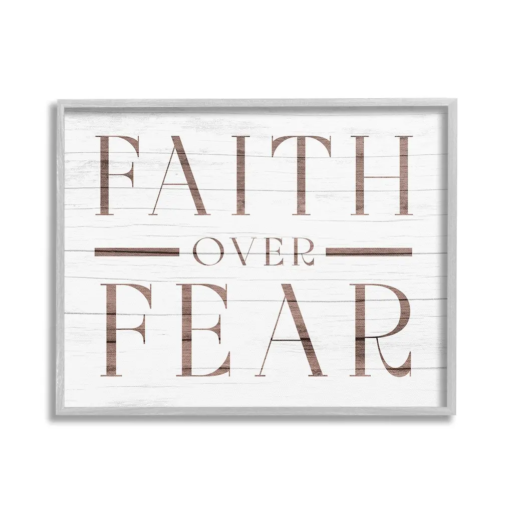 Stupell Rustic Faith Over Fear Framed Giclee Art Design By Lil' Rue - 14 X 11 - Grey