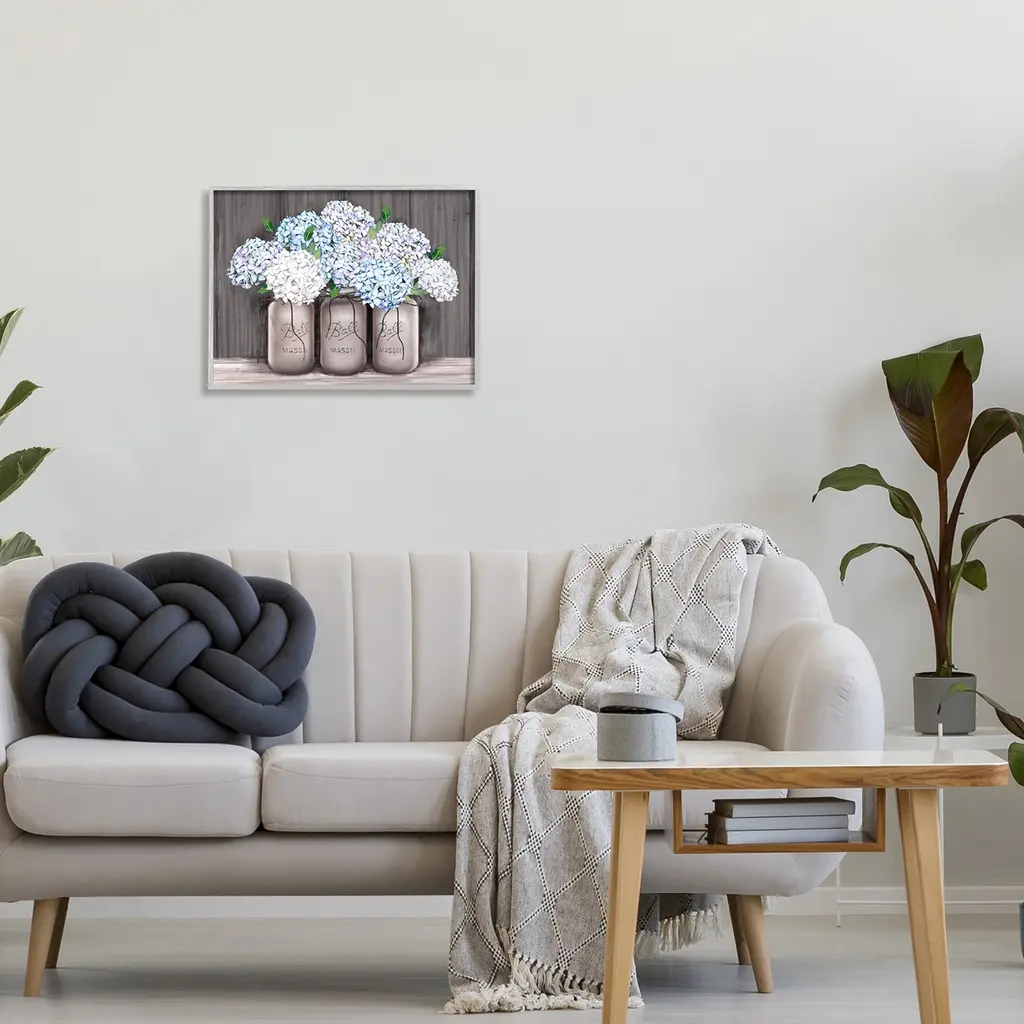 Stupell Rustic Farmhouse Hydrangea Blossoms Mason Jar Planter Framed Wall Art - Blue - 20 X 16 - Grey