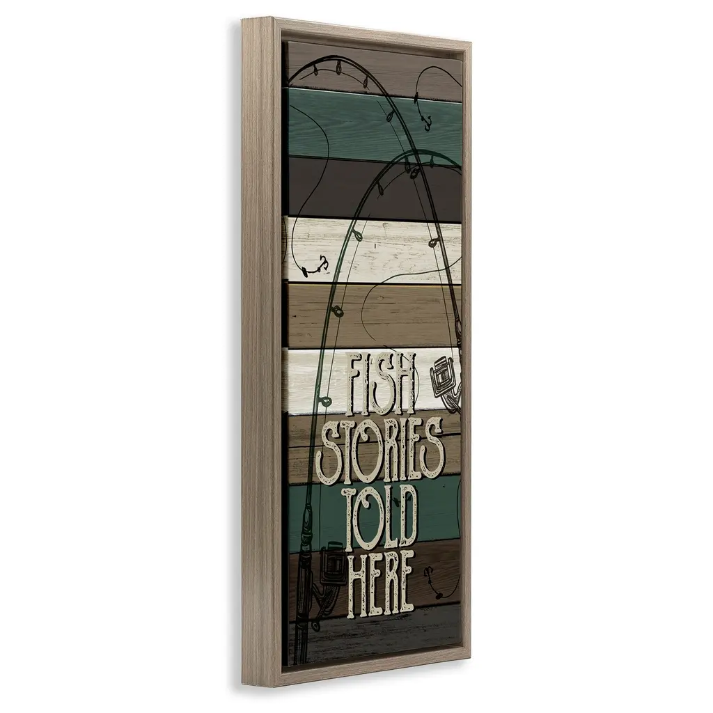 Stupell Rustic Fishing Stories Phrase Framed Floater Canvas Wall Art Design By Kim Allen - 11 X 25 - Brown