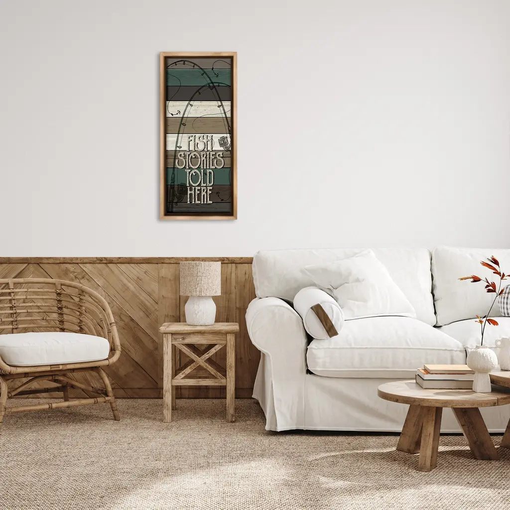 Elevate your home or office to the next level with Stupell Framed Floating Canvas Wall Art. Our premium hand-stretched canvas is mounted securely into a sturdy lightweight frame. The museum-style gap between the wrapped canvas and the box frame gives the illusion of floating artwork. Stupell Wall Art is made in the USA.Features: Dimensions: 11 x 1.7 x 25 Frame, 10 x 1.5 x 24 Canvas ArtFloating Frame Canvas Products are available in sizes 11"x25" and 14"x31". All Floating Frame Canvas Products have a 1.7" Depth.Wall Art is Ready to Hang with Hardware Free Hanging. No Installation required. For Easy Set Up Lean or Layer Artwork on Shelf or Against Wall. Artwork is Permently Fixed into the Frame.Our elevated 1.7" Thick Floating Frame is the perfect complement to our canvas style Wall Art. We use only the highest quality inks in house with industry leading printing solutions. Canvas is hand stretched over a durable wood foundation and then mounted securly into a Modern Box Frame. Made in the USA.Artwork Relates To: Rustic, Cabin, Lodge, Lake House, Fishing, Pattern, HumorDesign by Kim Allen