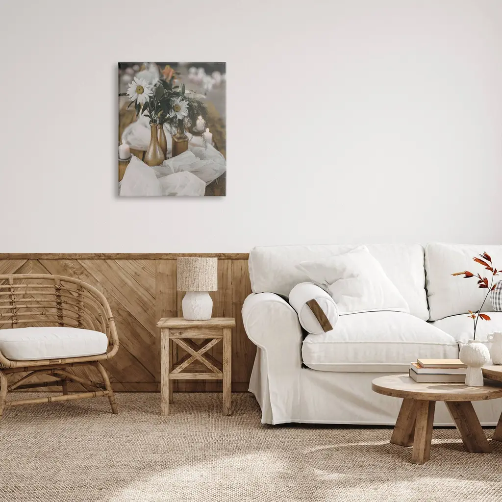 We create our stretched canvas to the highest standards. Using only the highest quality inks and canvas on Mimaki printers, we hand-cut and stretch each piece over a 1.5-inch thick wooden frame for hanging. As a result, the art comes ready to hang on the sturdy ledge with no installation required. Stupell Wall Art is made in the USA.Features: Dimensions: 16 x 1.5 x 20 InchesStretched Canvas Sizes Include Standard: 16 x 1.5 x 20 Large: 20 x 1.5 x 30 X-Large: 30 x 1.5 x 40 Oversized: 36 x 1.5 x 48Wall Art is Ready to Hang with Hardware Free Hanging. No installation required. For Easy Set Up Lean or Layer Artwork on Shelf or Against Wall.Our stretched canvas is created with the highest standards. We use only the highest quality inks and canvas on our in house Mimaki printers, and then hand cut and stretch each piece over a 1.5 inch thick wooden frame for hanging. Made In USA.Artwork Relates To: Flower, Flower Arrangement, Plant, Flower Bouquet, Daisy, Still Life, Rustic, CountryDesign by Lil' Rue