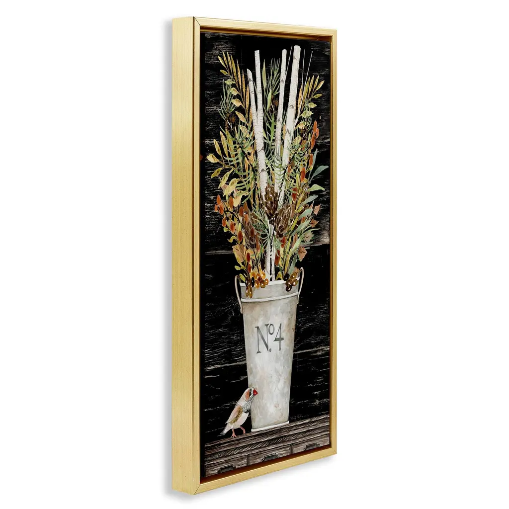 Elevate your home or office to the next level with Stupell Framed Floating Canvas Wall Art. Our premium hand-stretched canvas is mounted securely into a sturdy lightweight frame. The museum-style gap between the wrapped canvas and the box frame gives the illusion of floating artwork. Stupell Wall Art is made in the USA.Features: Dimensions: 11 x 1.7 x 25 Frame, 10 x 1.5 x 24 Canvas ArtFloating Frame Canvas Products are available in sizes 11"x25" and 14"x31". All Floating Frame Canvas Products have a 1.7" Depth.Wall Art is Ready to Hang with Hardware Free Hanging. No Installation required. For Easy Set Up Lean or Layer Artwork on Shelf or Against Wall. Artwork is Permently Fixed into the Frame.Our elevated 1.7" Thick Floating Frame is the perfect complement to our canvas style Wall Art. We use only the highest quality inks in house with industry leading printing solutions. Canvas is hand stretched over a durable wood foundation and then mounted securly into a Modern Box Frame. Made in the USA.Artwork Relates To: Flower, Floral, Bouquet, Country, Sill Life, Botanical, Bird, Animal, Rustic, FallDesign by Cindy Jacobs