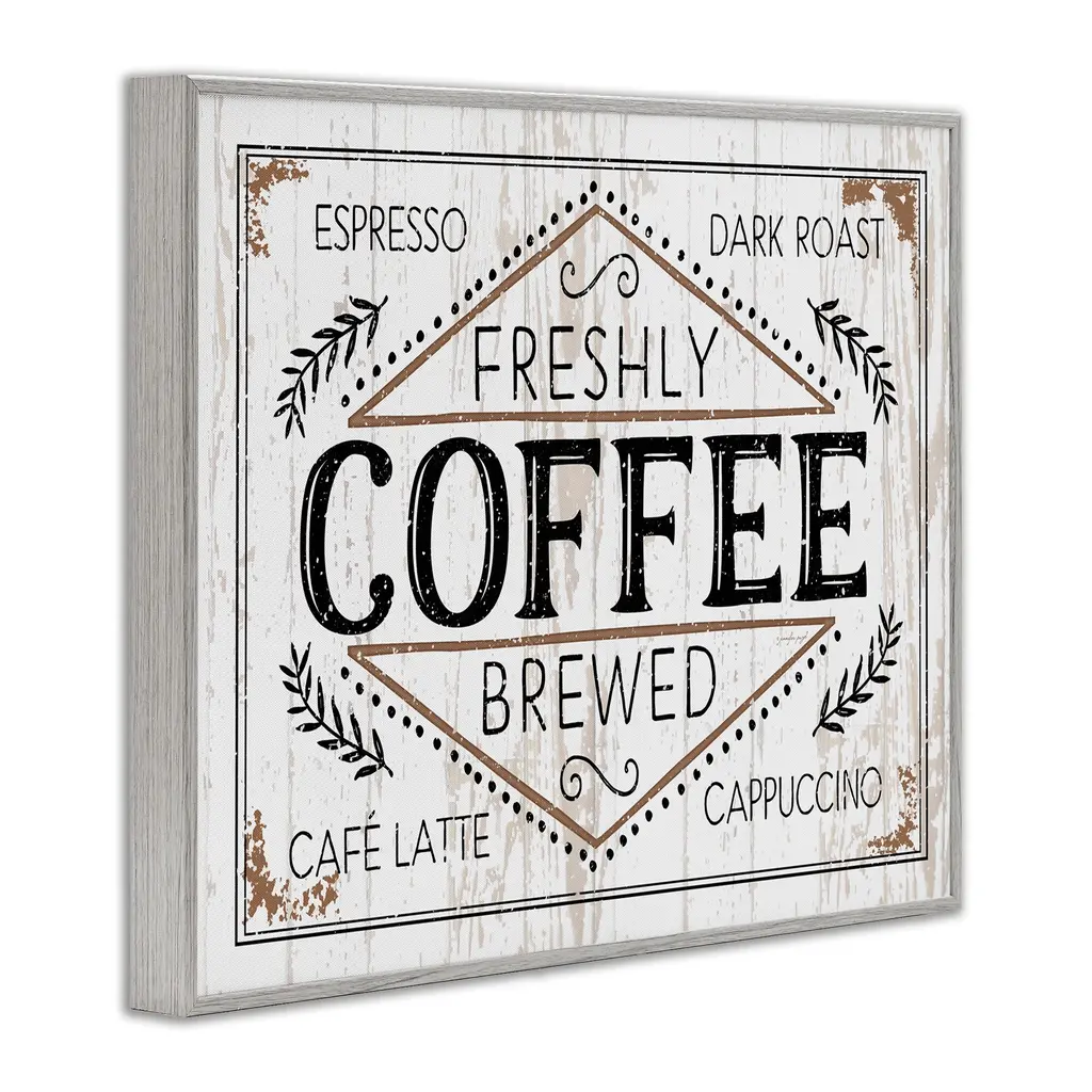 Stupell Rustic Fresh Brew Coffee Sign Autumn Charm Framed Giclee Texturized Art By Jennifer Pugh - 16 X 20 - Grey