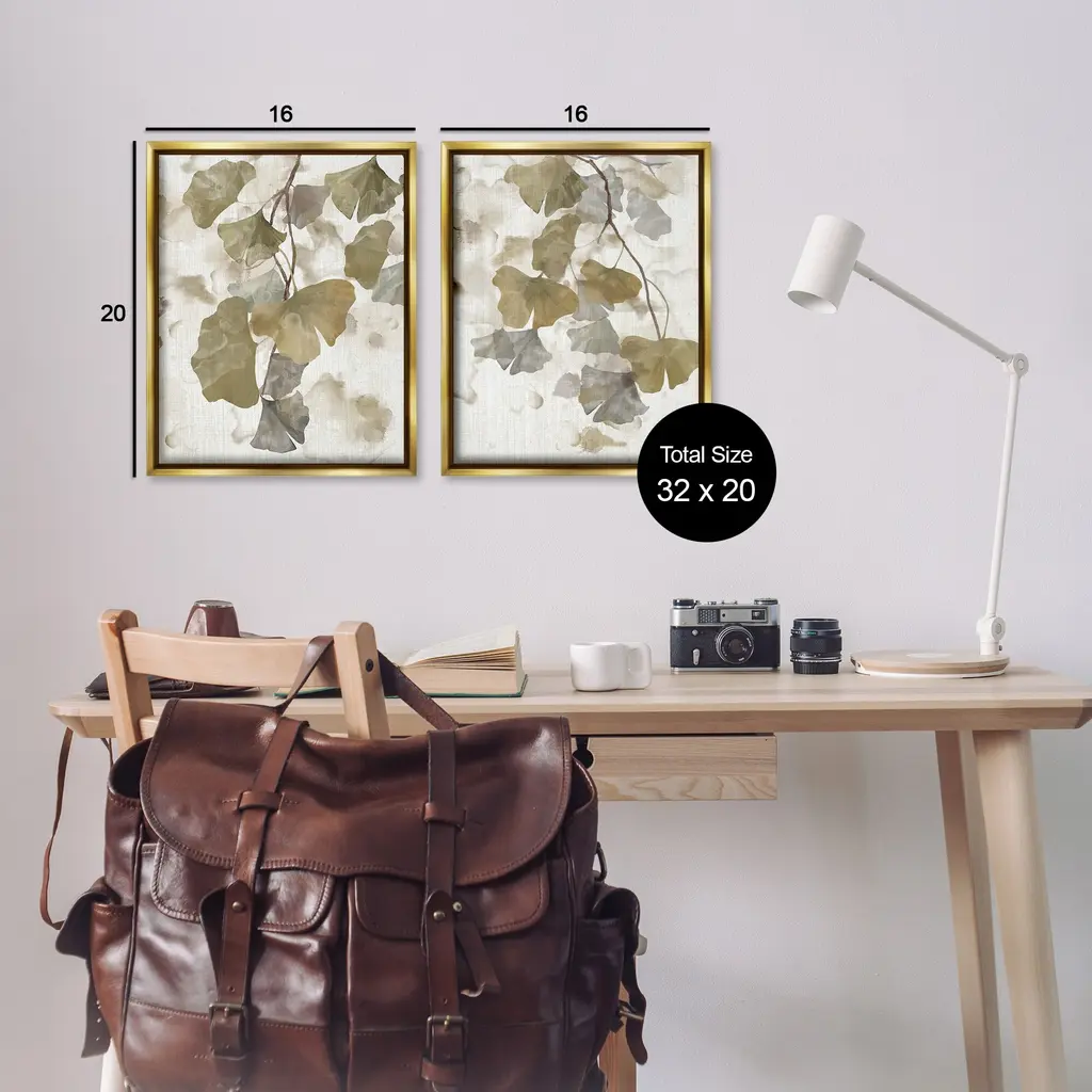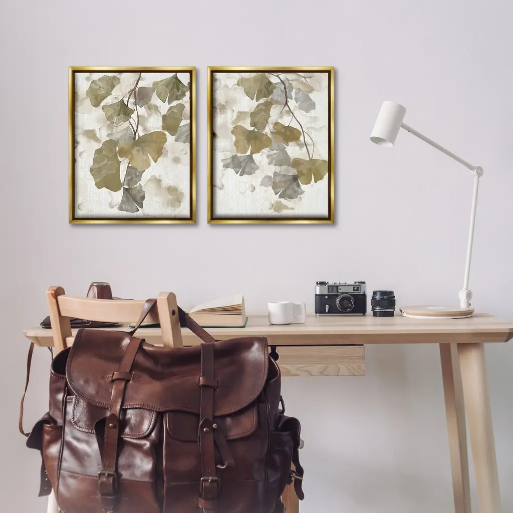 Stupell Rustic Gingko Leaves Framed Floater Canvas Wall Art Design By Nan (Set Of 2) - 17 X 21 - Gold