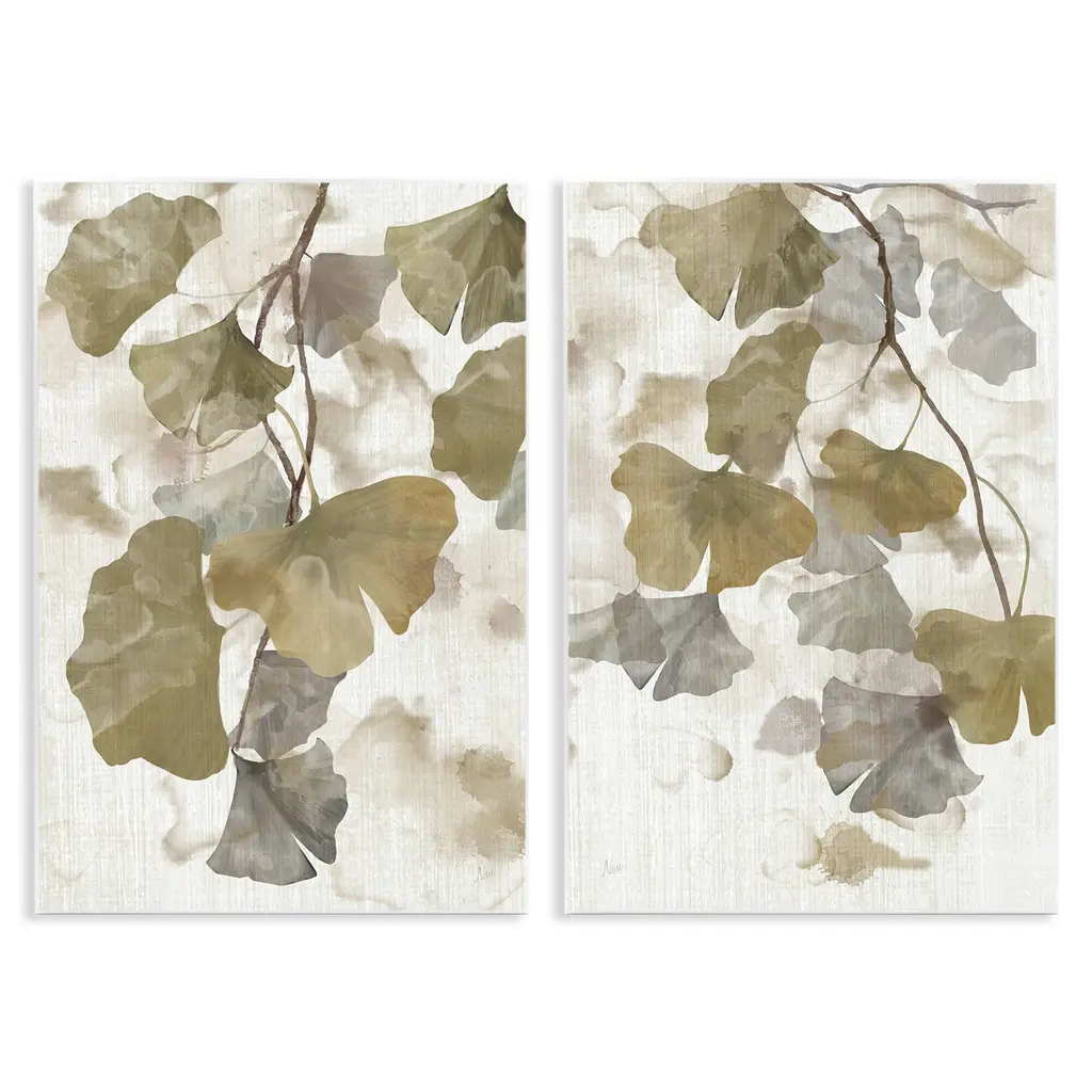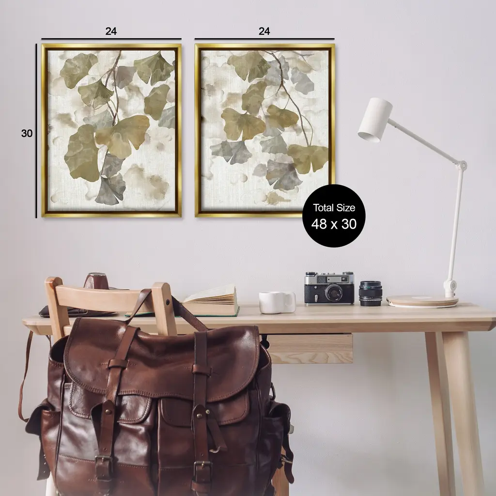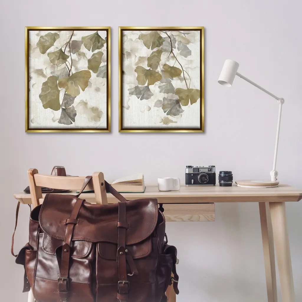 Stupell Rustic Gingko Leaves Framed Floater Canvas Wall Art Design By Nan (Set Of 2) - 25 X 31 - Gold