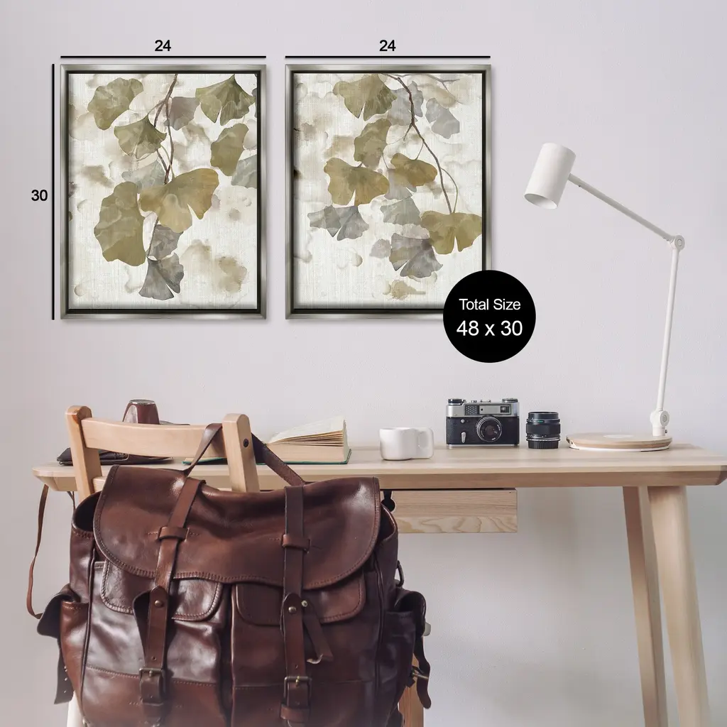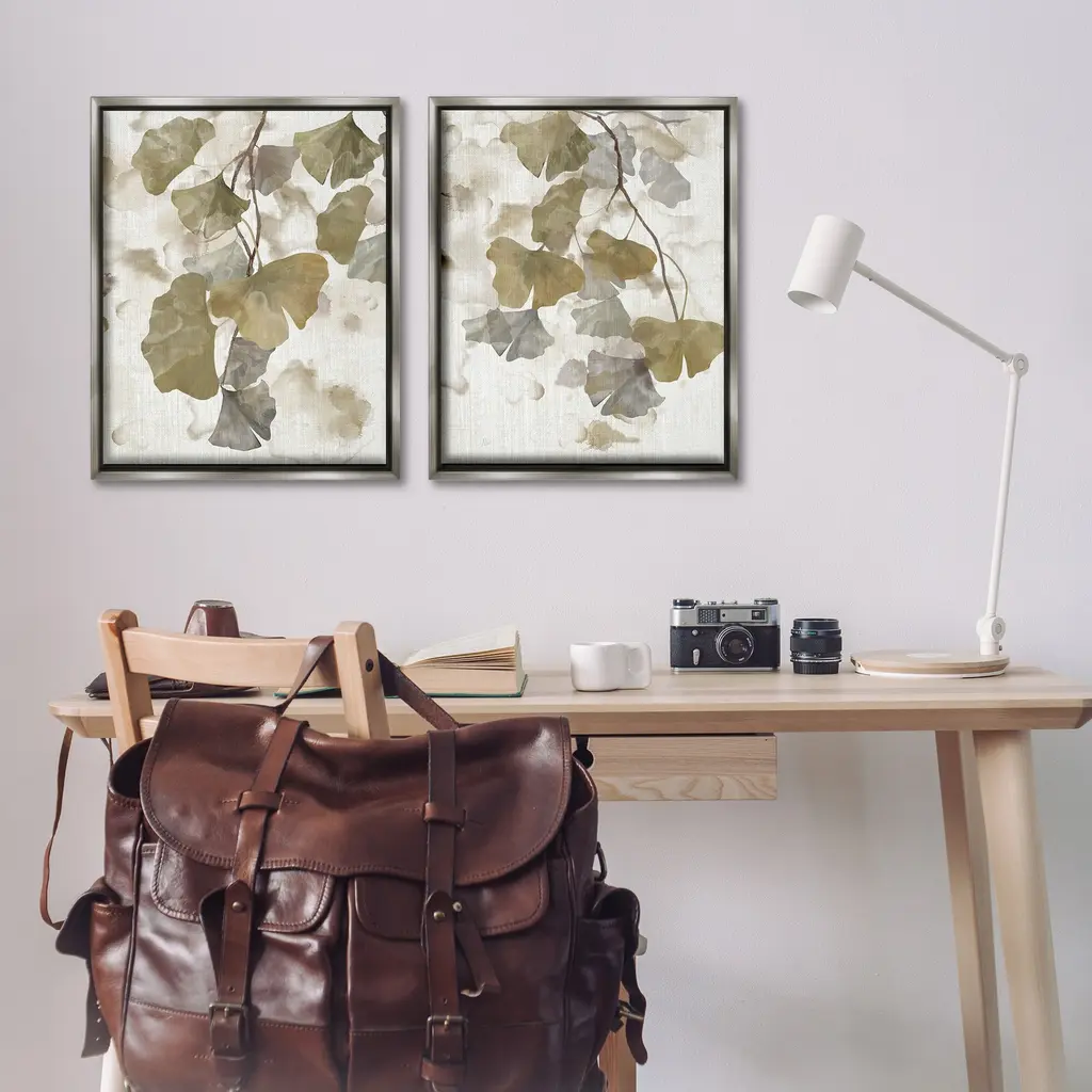 Stupell Rustic Gingko Leaves Framed Floater Canvas Wall Art Design By Nan (Set Of 2) - 25 X 31 - Grey