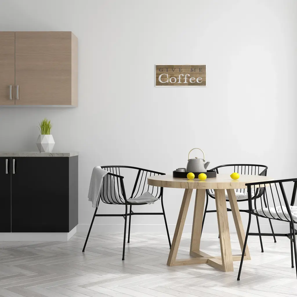 Our wall plaques start as high-quality lithograph prints mounted on durable 0.5-inch thick MDF wood. Each piece is hand finished and comes with a fresh layer of white foil on the sides to give it a crisp, clean look. Plaques arrive ready to hang without installation and come with removable plastic corners to keep them from damage in transit. Stupell Industries Wall Art is made in the USA.Features: Dimensions: 17 x 0.5 x 7 InchesWall Art is Ready to Hang with Hardware Free Hanging. No installation required. For Easy Set Up Lean or Layer Artwork on Shelf or Against Wall.All of our wall plaques start off as high quality lithograph prints that are then mounted on durable 0.5 inch thick MDF wood. Each piece is hand finished and comes with a fresh layer of foil on the sides to give it a crisp clean look. Made In USA.Artwork Relates To: Rustic, Kitchen, Coffee, Farmhouse, Give Me CoffeeDesign by Yass Naffas Designs
