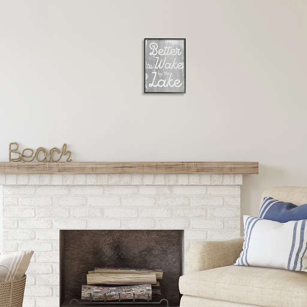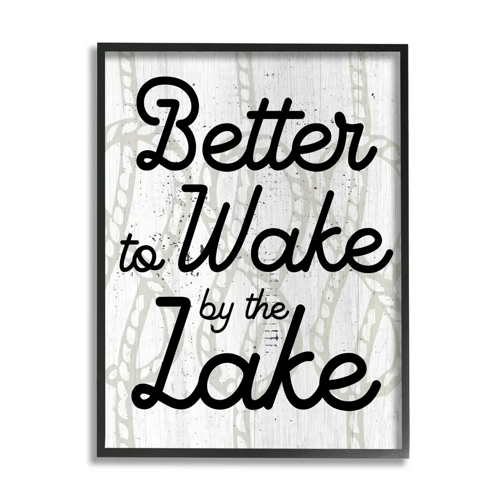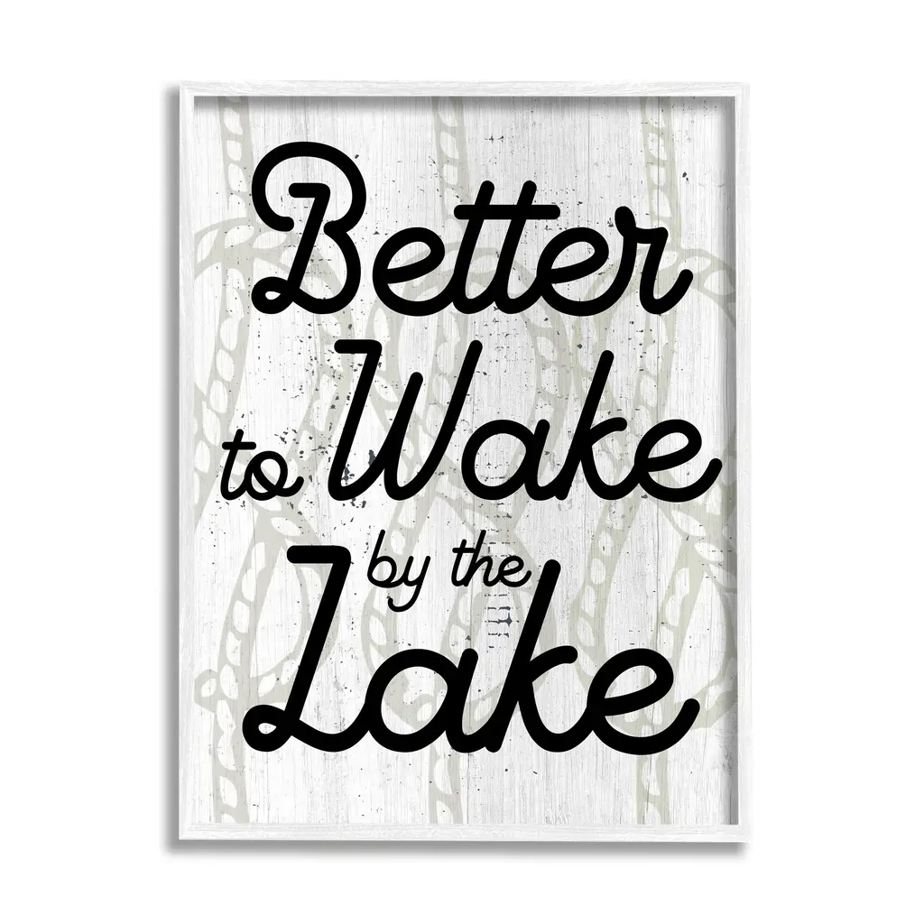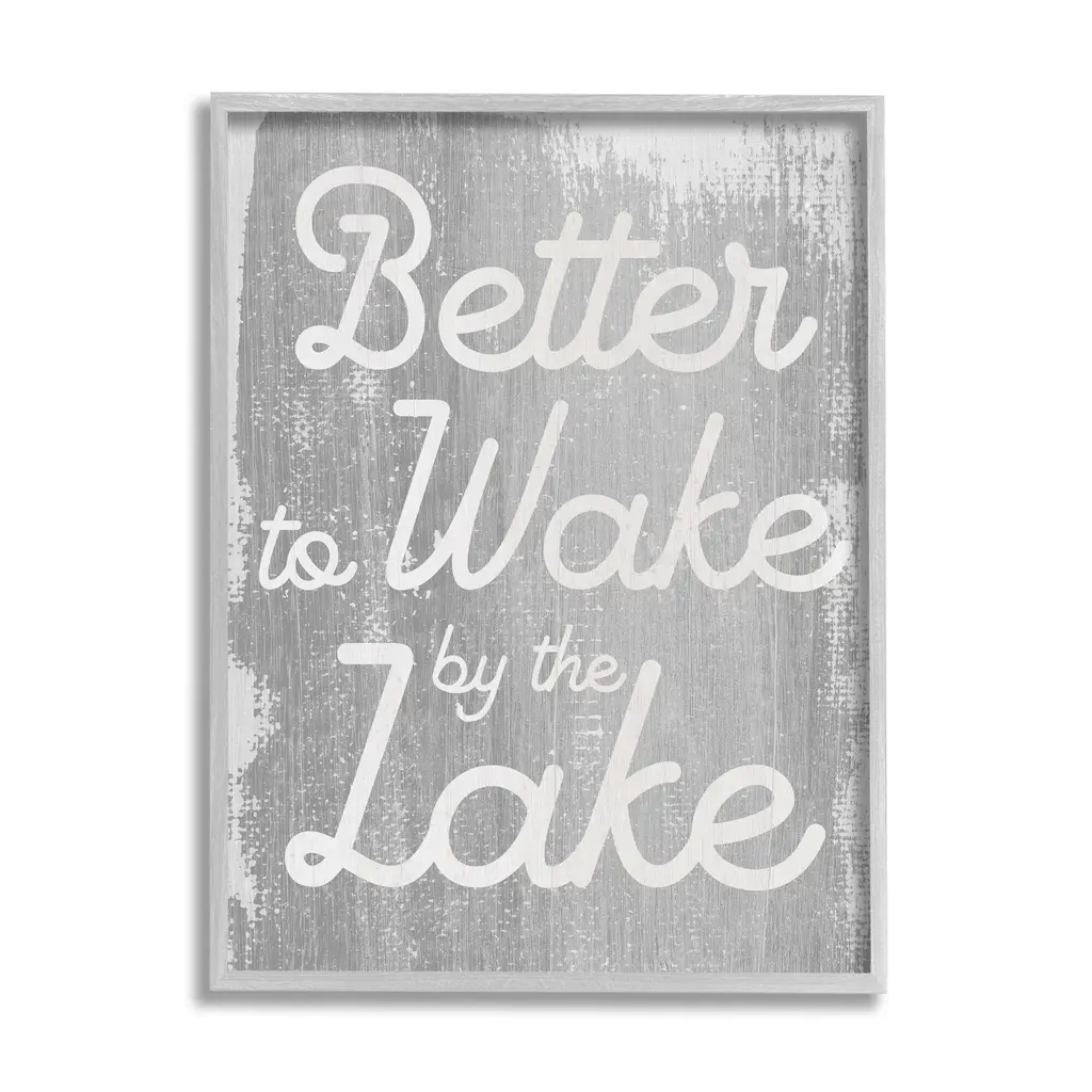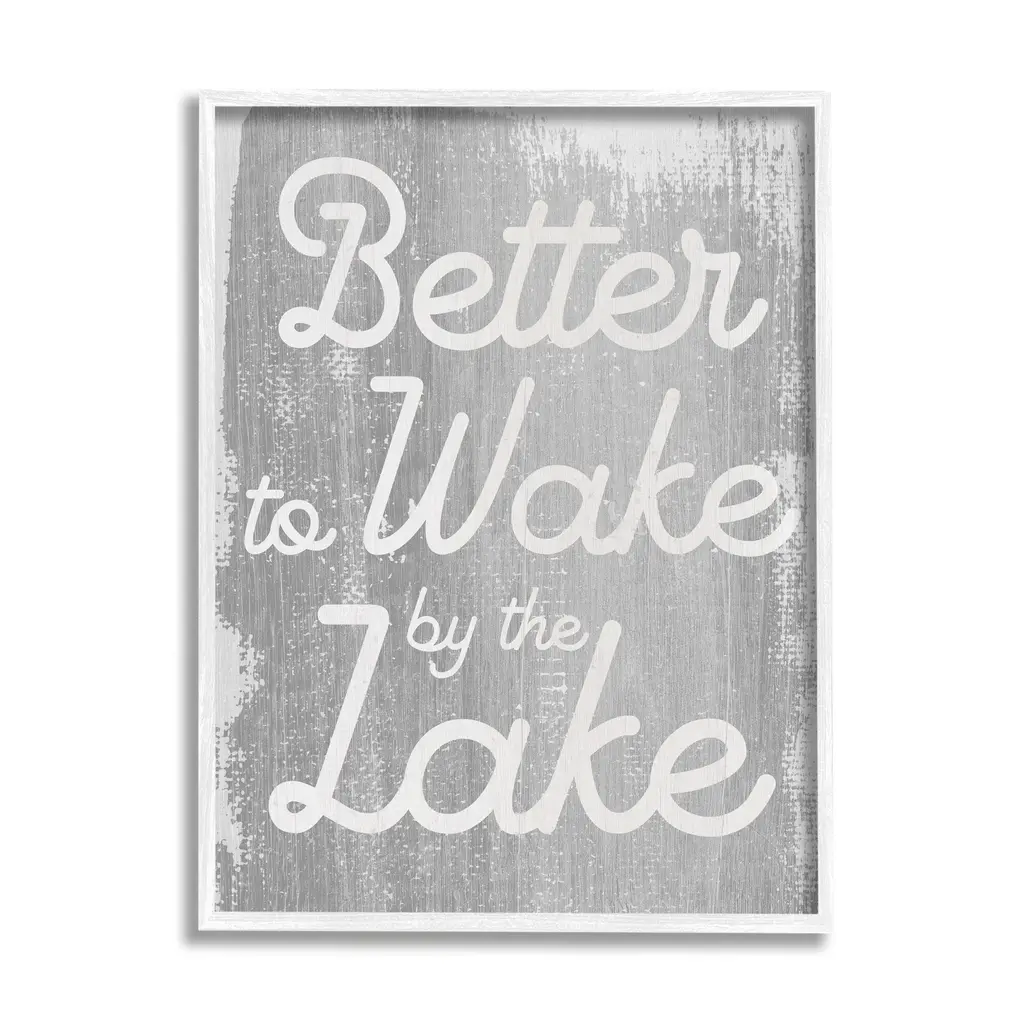 Add dimension to any room with our textured Framed Giclee Artwork. Our framed artwork is securely mounted into a 1.5-inch thick wood grain frame and ready to hang. Frames are available in three alluring styles: black, gray farmhouse and white. In addition, you should check out our oversized options if you want a statement piece. Stupell Wall Art is made in the USA.Features: Dimensions: 11 x 1.5 x 14 FramedFramed Giclee Sizes Include Standard: 11 x 1.5 x 14 Large: 16 x 1.5 x 20 Oversized: 24 x 1.5 x 30Wall Art is Ready to Hang with Hardware Free Hanging. No installation required. For Easy Set Up Lean or Layer Artwork on Shelf or Against Wall.Our giclée prints are carefully mounted on a durable MDF backing, and then perfectly finished in a 1.5 inch thick woodgrain frame. Mounted frame colors include black, gray farmhouse and white. Made In USA.Artwork Relates To: Phrase, Rustic, Phrase, Lake house, Better to Wake by the LakeDesign by Lil' Rue
