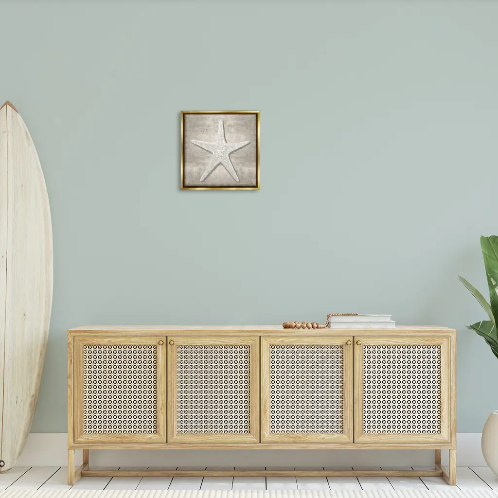Elevate your home or office to the next level with Stupell Framed Floating Canvas Wall Art. Our premium hand-stretched canvas is mounted securely into a sturdy lightweight frame. The museum-style gap between the wrapped canvas and the box frame gives the illusion of floating artwork. Stupell Wall Art is made in the USA.Features: Dimensions: 18 x 1.7 x 18 Frame, 17 x 1.5 x 17 Canvas ArtFloating Frame Canvas Products are available in sizes 18"x18" and 25"x25". All Floating Frame Canvas Products have a 1.7" Depth.Wall Art is Ready to Hang with Hardware Free Hanging. No Installation required. For Easy Set Up Lean or Layer Artwork on Shelf or Against Wall. Artwork is Permently Fixed into the Frame.Our elevated 1.7" Thick Floating Frame is the perfect complement to our canvas style Wall Art. We use only the highest quality inks in house with industry leading printing solutions. Canvas is hand stretched over a durable wood foundation and then mounted securly into a Modern Box Frame. Made in the USA.Artwork Relates To: Animal, Invertebrate, Sea Life, Seashell, Starfish, Nautical, BeachDesign by Amber Sterling