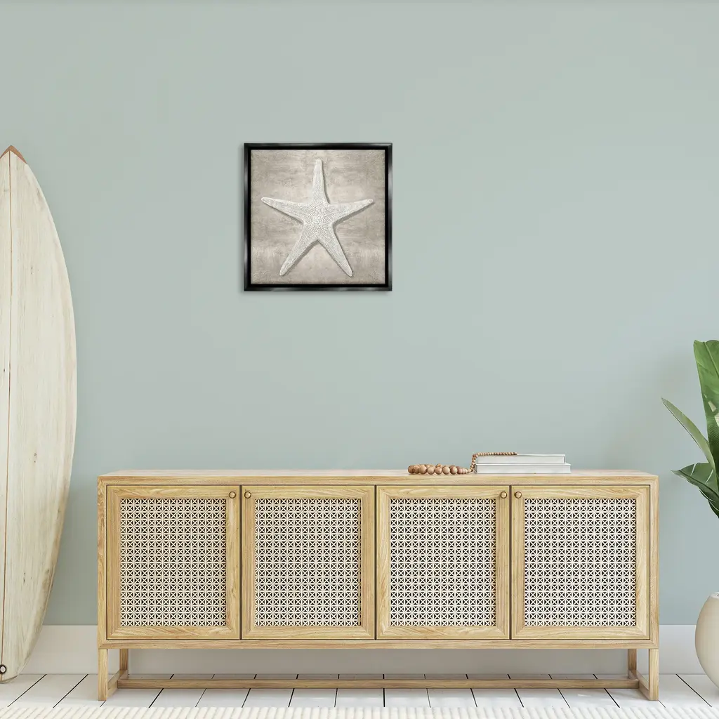 Elevate your home or office to the next level with Stupell Framed Floating Canvas Wall Art. Our premium hand-stretched canvas is mounted securely into a sturdy lightweight frame. The museum-style gap between the wrapped canvas and the box frame gives the illusion of floating artwork. Stupell Wall Art is made in the USA.Features: Dimensions: 18 x 1.7 x 18 Frame, 17 x 1.5 x 17 Canvas ArtFloating Frame Canvas Products are available in sizes 18"x18" and 25"x25". All Floating Frame Canvas Products have a 1.7" Depth.Wall Art is Ready to Hang with Hardware Free Hanging. No Installation required. For Easy Set Up Lean or Layer Artwork on Shelf or Against Wall. Artwork is Permently Fixed into the Frame.Our elevated 1.7" Thick Floating Frame is the perfect complement to our canvas style Wall Art. We use only the highest quality inks in house with industry leading printing solutions. Canvas is hand stretched over a durable wood foundation and then mounted securly into a Modern Box Frame. Made in the USA.Artwork Relates To: Animal, Invertebrate, Sea Life, Seashell, Starfish, Nautical, BeachDesign by Amber Sterling