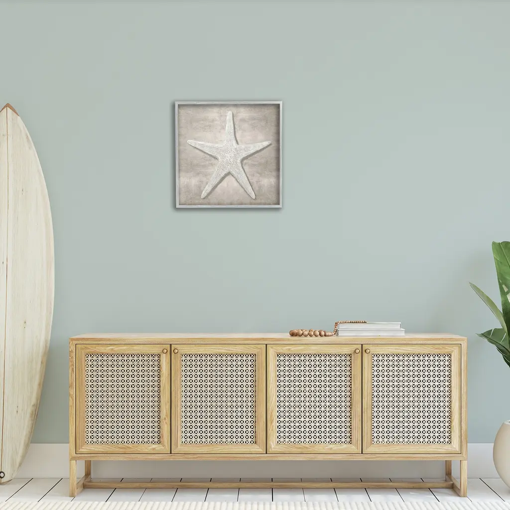 Add dimension to any room with our textured Framed Giclee Artwork. Our framed artwork is securely mounted into a 1.5-inch thick wood grain frame and ready to hang. Frames are available in three alluring styles: black, gray farmhouse and white. In addition, you should check out our oversized options if you want a statement piece. Stupell Wall Art is made in the USA.Features: Dimensions: 12 x 1.5 x 12 FramedFramed Giclee Product Sizes Include 12"x12", 17"x17", and 24"x24". Framed Giclee Products have a 1.5" Depth. Wall Art is Ready to Hang with Hardware Free Hanging. No installation required. For Easy Set Up Lean or Layer Artwork on Shelf or Against Wall.Our giclée prints are carefully mounted on a durable MDF backing, and then perfectly finished in a 1.5 inch thick woodgrain frame. Mounted frame colors include black, gray farmhouse and white. Made In USA.Artwork Relates To: Animal, Invertebrate, Sea Life, Seashell, Starfish, Nautical, BeachDesign by Amber Sterling