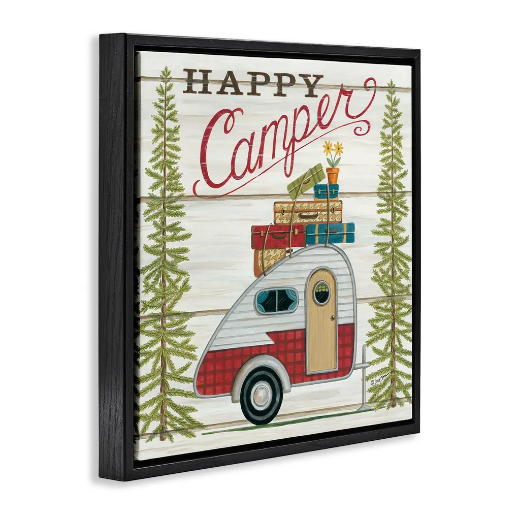 Stupell Rustic Happy Camper Phrase Framed Floater Canvas Wall Art Design By Deb Strain - 18 X 18 - Black