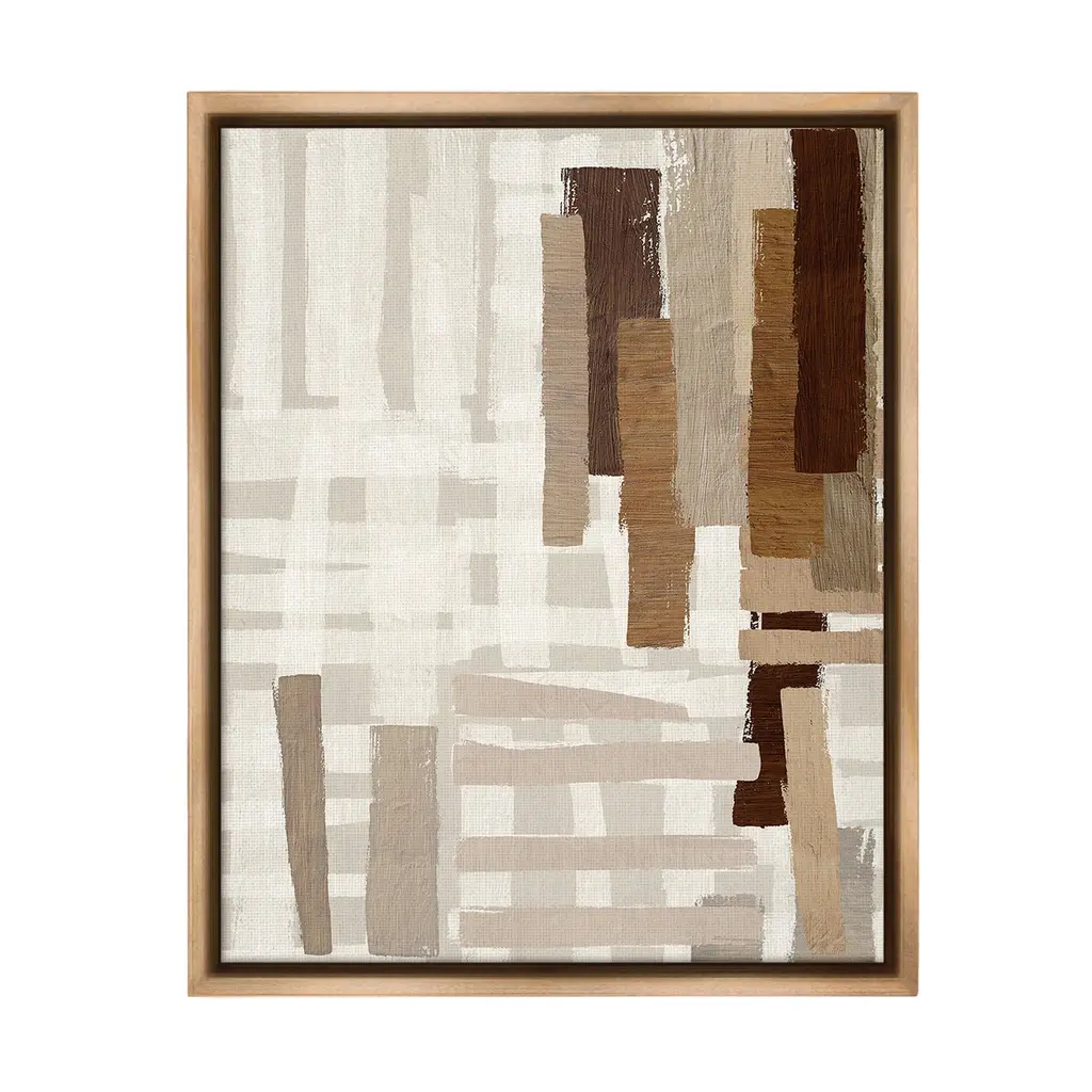 Elevate your home or office to the next level with Stupell Framed Floating Canvas Wall Art. Our premium hand-stretched canvas is mounted securely into a sturdy lightweight frame. The museum-style gap between the wrapped canvas and the box frame gives the illusion of floating artwork. Stupell Wall Art is made in the USA.Features: Dimensions: 17 x 1.7 x 21 Frame, 16 x 1.5 x 20 Canvas ArtFloating Frame Canvas Products are available in sizes 17"x21" and 25"x31". All Floating Frame Canvas Products have a 1.7" Depth.Wall Art is Ready to Hang with Hardware Free Hanging. No Installation required. For Easy Set Up Lean or Layer Artwork on Shelf or Against Wall. Artwork is Permently Fixed into the Frame.Our elevated 1.7" Thick Floating Frame is the perfect complement to our canvas style Wall Art. We use only the highest quality inks in house with industry leading printing solutions. Canvas is hand stretched over a durable wood foundation and then mounted securly into a Modern Box Frame. Made in the USA.Artwork Relates To: Abstract, Neutral, Desert, Southwestern, Beige, Brown, Pattern, Stripes, GeometricDesign by Amber Sterling