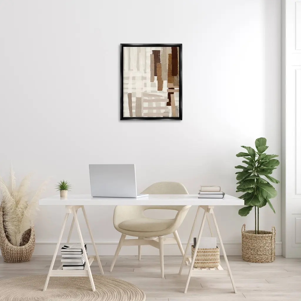 Elevate your home or office to the next level with Stupell Framed Floating Canvas Wall Art. Our premium hand-stretched canvas is mounted securely into a sturdy lightweight frame. The museum-style gap between the wrapped canvas and the box frame gives the illusion of floating artwork. Stupell Wall Art is made in the USA.Features: Dimensions: 17 x 1.7 x 21 Frame, 16 x 1.5 x 20 Canvas ArtFloating Frame Canvas Products are available in sizes 17"x21" and 25"x31". All Floating Frame Canvas Products have a 1.7" Depth.Wall Art is Ready to Hang with Hardware Free Hanging. No Installation required. For Easy Set Up Lean or Layer Artwork on Shelf or Against Wall. Artwork is Permently Fixed into the Frame.Our elevated 1.7" Thick Floating Frame is the perfect complement to our canvas style Wall Art. We use only the highest quality inks in house with industry leading printing solutions. Canvas is hand stretched over a durable wood foundation and then mounted securly into a Modern Box Frame. Made in the USA.Artwork Relates To: Abstract, Neutral, Desert, Southwestern, Beige, Brown, Pattern, Stripes, GeometricDesign by Amber Sterling