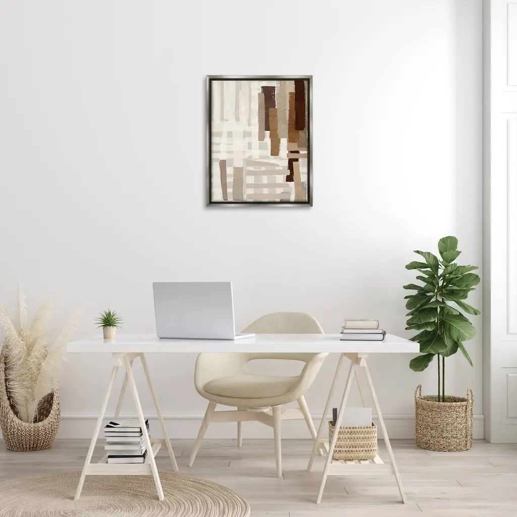 Elevate your home or office to the next level with Stupell Framed Floating Canvas Wall Art. Our premium hand-stretched canvas is mounted securely into a sturdy lightweight frame. The museum-style gap between the wrapped canvas and the box frame gives the illusion of floating artwork. Stupell Wall Art is made in the USA.Features: Dimensions: 17 x 1.7 x 21 Frame, 16 x 1.5 x 20 Canvas ArtFloating Frame Canvas Products are available in sizes 17"x21" and 25"x31". All Floating Frame Canvas Products have a 1.7" Depth.Wall Art is Ready to Hang with Hardware Free Hanging. No Installation required. For Easy Set Up Lean or Layer Artwork on Shelf or Against Wall. Artwork is Permently Fixed into the Frame.Our elevated 1.7" Thick Floating Frame is the perfect complement to our canvas style Wall Art. We use only the highest quality inks in house with industry leading printing solutions. Canvas is hand stretched over a durable wood foundation and then mounted securly into a Modern Box Frame. Made in the USA.Artwork Relates To: Abstract, Neutral, Desert, Southwestern, Beige, Brown, Pattern, Stripes, GeometricDesign by Amber Sterling
