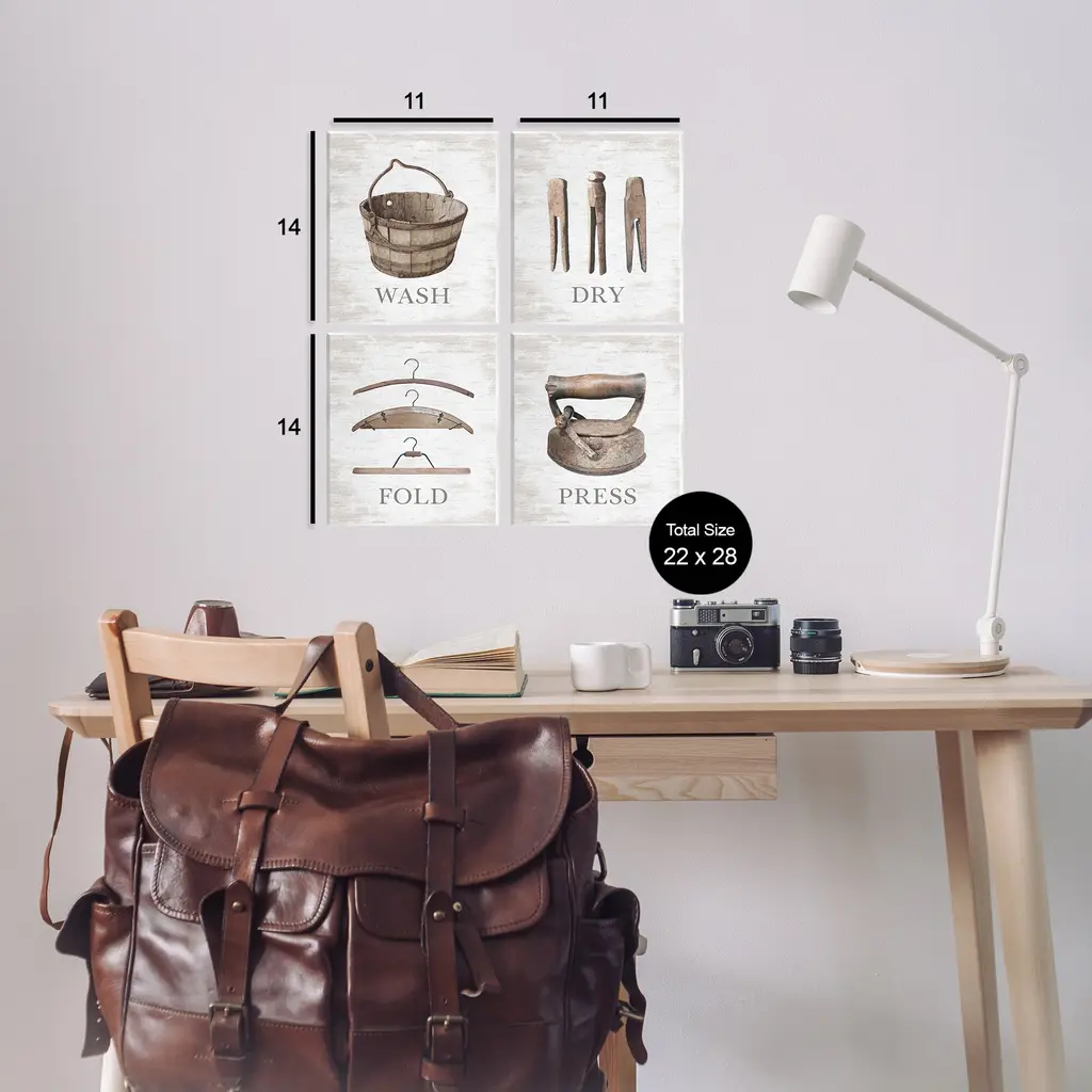 Fill any space with Stupell Wall Art Sets. Our wall plaques start as high-quality lithograph prints mounted on durable 0.5-inch thick MDF wood. Each piece is hand finished and comes with a fresh layer of white foil on the sides to give it a crisp, clean look. Plaques arrive ready to hang without installation and come with removable plastic corners to keep them from damage in transit. Stupell Wall Art is made in the USA.Features: Dimensions: 4 Piece Set, Each Panel is 11 x 0.5 x 14 InchesWall Art is Ready to Hang with Hardware Free Hanging. No installation required. For Easy Set Up Lean or Layer Artwork on Shelf or Against Wall.All of our wall plaques start off as high quality lithograph prints that are then mounted on durable 0.5 inch thick MDF wood. Each piece is hand finished and comes with a fresh layer of foil on the sides to give it a crisp clean look. Made In USA.Artwork Relates To: Laundry, Country, Farmhouse, Vintage, Rustic, Phrase, SignDesign by Raye Allison Creations