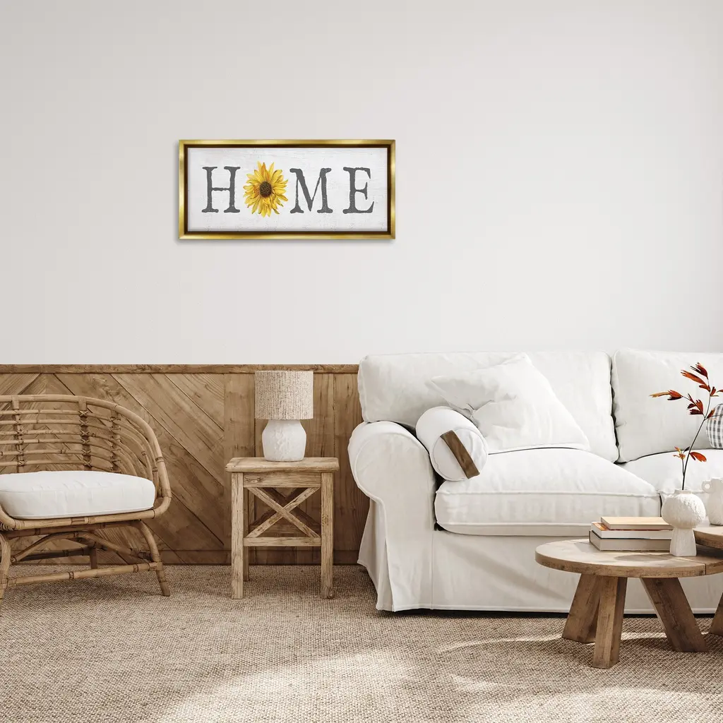 Stupell Rustic Home Text With Sunflower Framed Floater Canvas Wall Art Design By Daphne Polselli - 25 X 11 - Gold