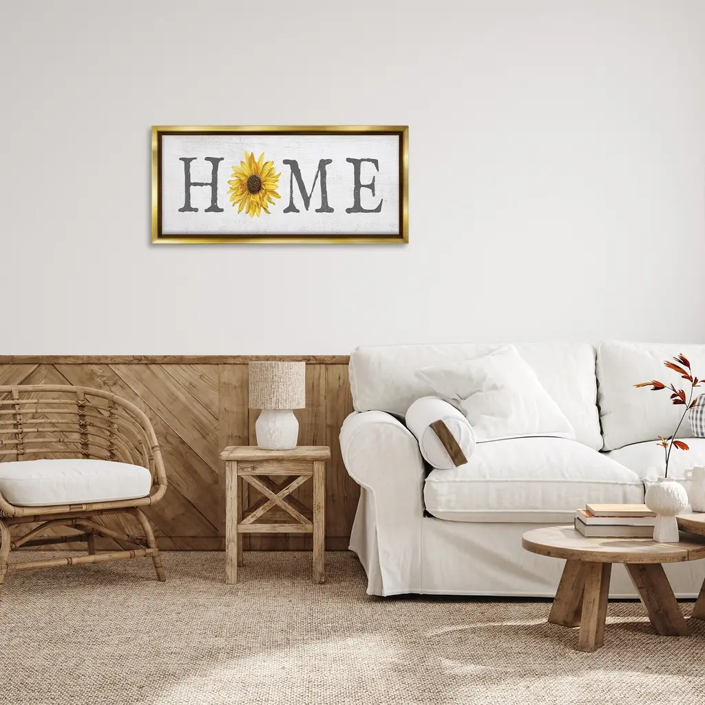 Elevate your home or office to the next level with Stupell Framed Floating Canvas Wall Art. Our premium hand-stretched canvas is mounted securely into a sturdy lightweight frame. The museum-style gap between the wrapped canvas and the box frame gives the illusion of floating artwork. Stupell Wall Art is made in the USA.Features: Dimensions: 25 x 1.7 x 11 Frame, 24 x 1.5 x 10 Canvas ArtFloating Frame Canvas Products are available in sizes 25"x11" and 31"x14". All Floating Frame Canvas Products have a 1.7" Depth.Wall Art is Ready to Hang with Hardware Free Hanging. No Installation required. For Easy Set Up Lean or Layer Artwork on Shelf or Against Wall. Artwork is Permently Fixed into the Frame.Our elevated 1.7" Thick Floating Frame is the perfect complement to our canvas style Wall Art. We use only the highest quality inks in house with industry leading printing solutions. Canvas is hand stretched over a durable wood foundation and then mounted securly into a Modern Box Frame. Made in the USA.Artwork Relates To: Country, Flower, Floral, Sunflower, RusticDesign by Daphne Polselli