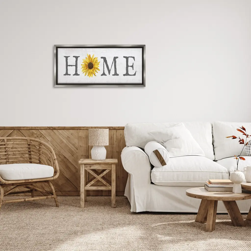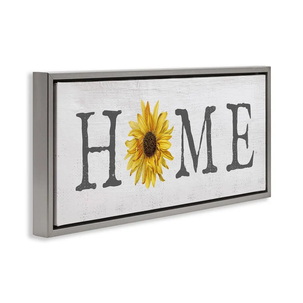 Stupell Rustic Home Text With Sunflower Framed Floater Canvas Wall Art Design By Daphne Polselli - 31 X 14 - Grey