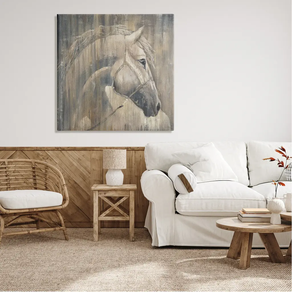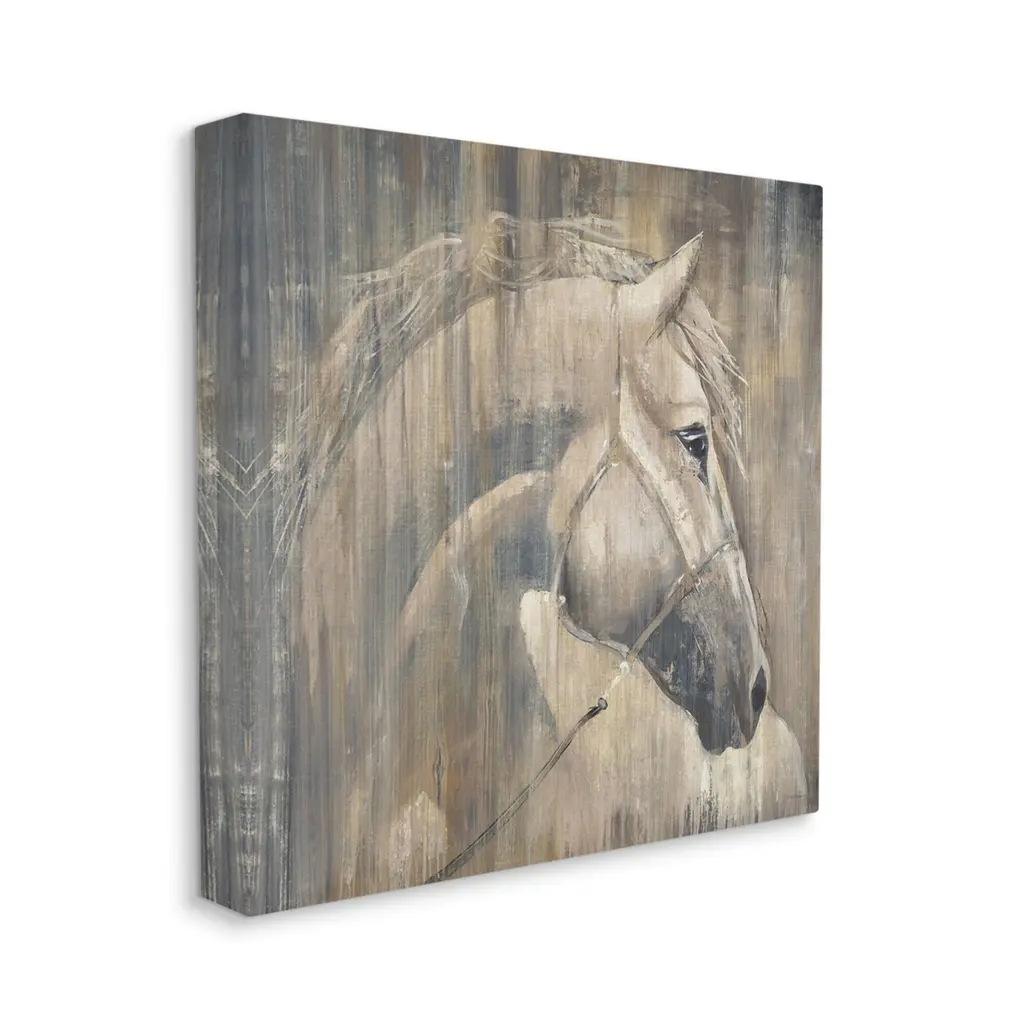 We create our stretched canvas to the highest standards. Using only the highest quality inks and canvas on Mimaki printers, we hand-cut and stretch each piece over a 1.5-inch thick wooden frame for hanging. As a result, the art comes ready to hang on the sturdy ledge with no installation required. Stupell Wall Art is made in the USA.Features: Dimensions: 17 x 1.5 x 17 InchesStretched Canvas Sizes Include Standard: 17 x 1.5 x 17 Large: 24 x 1.5 x 24 X-Large: 30 x 1.5 x 30 Oversized: 36 x 1.5 x 36Wall Art is Ready to Hang with Hardware Free Hanging. No installation required. For Easy Set Up Lean or Layer Artwork on Shelf or Against Wall.Our stretched canvas is created with the highest standards. We use only the highest quality inks and canvas on our in house Mimaki printers, and then hand cut and stretch each piece over a 1.5 inch thick wooden frame for hanging. Made In USA.Artwork Relates To: Person, Animal, Mammal, Horse, Painting, Halter, Colt Horse, Andalusian Horse, StallionDesign by Liz Jardine