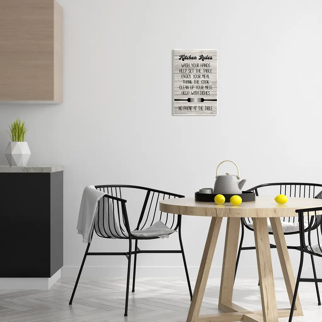 Our wall plaques start as high-quality lithograph prints mounted on durable 0.5-inch thick MDF wood. Each piece is hand finished and comes with a fresh layer of white foil on the sides to give it a crisp, clean look. Plaques arrive ready to hang without installation and come with removable plastic corners to keep them from damage in transit. Wall Art is made in the USA.Features: Dimensions: 10 x 0.5 x 15 InchesWall Plaque Sizes Include Standard: 10 x 0.5 x 15 Oversized: 13 x 0.5 x 19Wall Art is Ready to Hang with Hardware Free Hanging. No installation required. For Easy Set Up Lean or Layer Artwork on Shelf or Against Wall.All of our wall plaques start off as high quality lithograph prints that are then mounted on durable 0.5 inch thick MDF wood. Each piece is hand finished and comes with a fresh layer of foil on the sides to give it a crisp clean look. Made In USA.Artwork Relates To: Cutlery, Fork, Kitchen, Rules, Rustic, CountryDesign by Martina Pavlova
