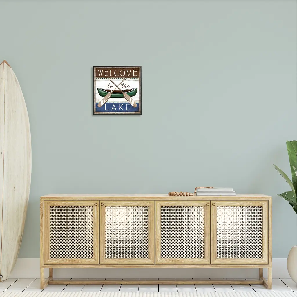 Stupell Rustic Lake Welcome Canoe Sign Framed Giclee Texturized Wall Art, Design By Elizabeth Tyndall - 17 X 17 - Black