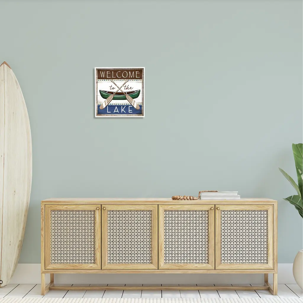 Stupell Rustic Lake Welcome Canoe Sign Framed Giclee Texturized Wall Art, Design By Elizabeth Tyndall - 17 X 17 - White