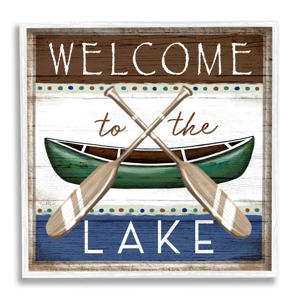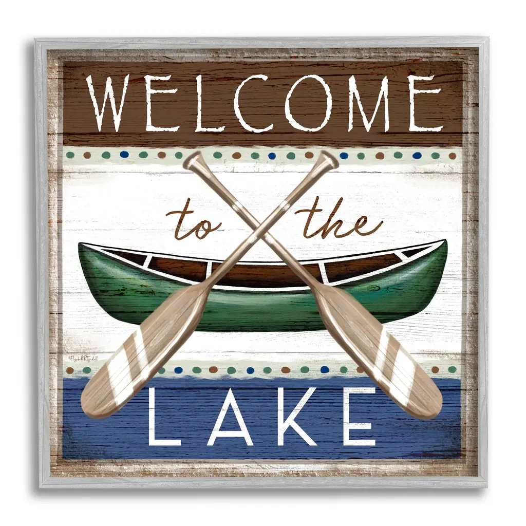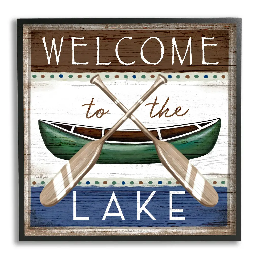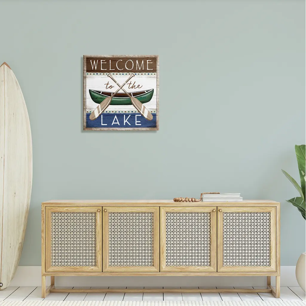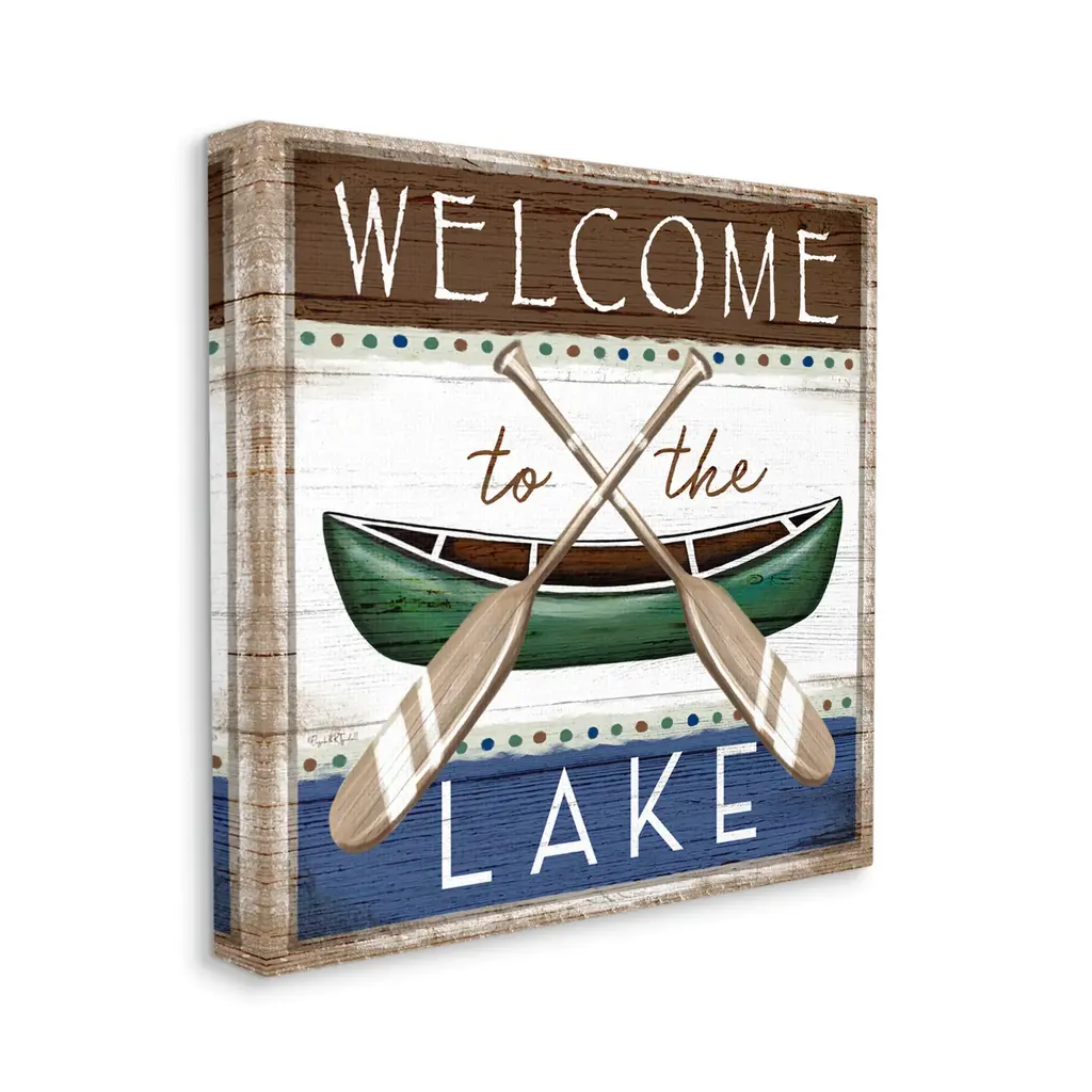 Stupell Rustic Lake Welcome Canoe Sign Stretched Canvas Wall Art, Design By Elizabeth Tyndall - 24 X 24