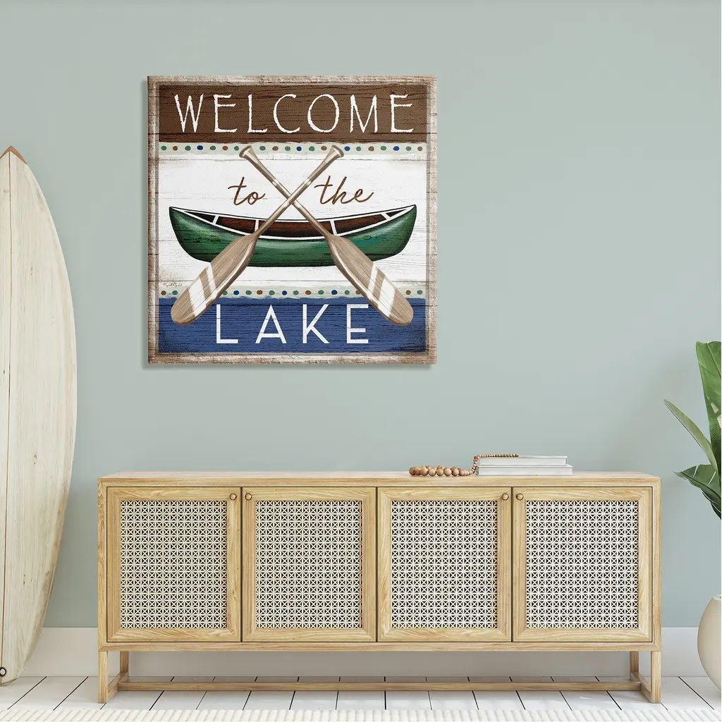 Stupell Rustic Lake Welcome Canoe Sign Stretched Canvas Wall Art, Design By Elizabeth Tyndall - 36 X 36
