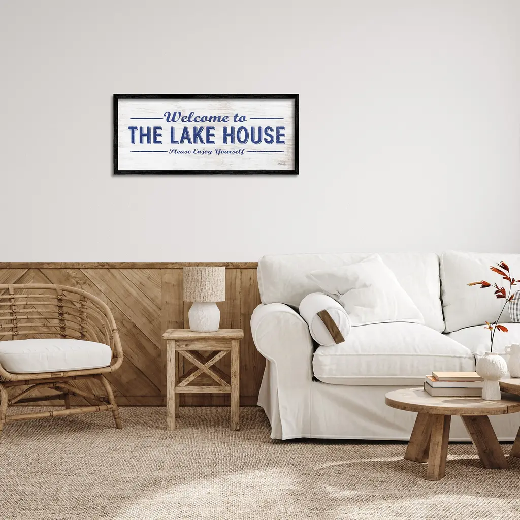 Add dimension to any room with our textured Framed Giclee Artwork. Our framed artwork is securely mounted into a 1.5-inch thick wood grain frame and ready to hang. Frames are available in three alluring styles: black, gray farmhouse and white. In addition, you should check out our oversized options if you want a statement piece. Stupell Wall Art is made in the USA.Features: Dimensions: 24 x 1.5 x 10 FramedFramed Giclee Product Sizes include 24"x10" and 30"x13". All Framed Giclee products have a 1.5" Depth.Wall Art is Ready to Hang with Hardware Free Hanging. No installation required. For Easy Set Up Lean or Layer Artwork on Shelf or Against Wall.Our giclée prints are carefully mounted on a durable MDF backing, and then perfectly finished in a 1.5 inch thick woodgrain frame. Mounted frame colors include black, gray farmhouse and white. Made In USA.Artwork Relates To: Lake House, Rustic, Welcome, Phrase, Nautical, Cabin, LodgeDesign by Lauren Rader